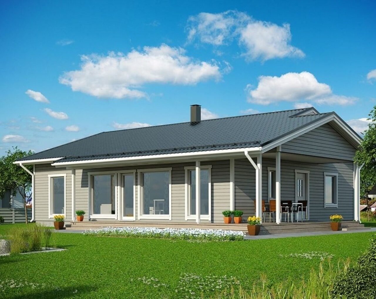 Дом 100 кв м одноэтажный с двухскатной крышей