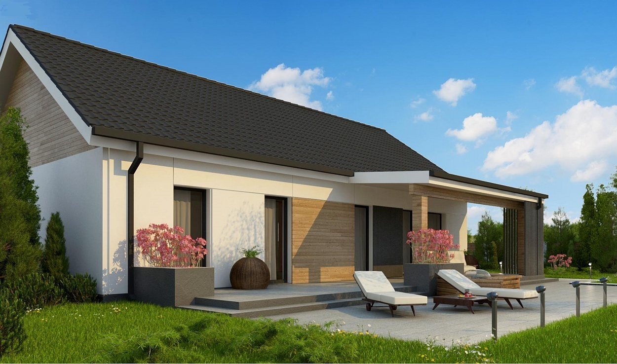 Одноэтажные дома с гаражом и террасой на 120-130 кв.м