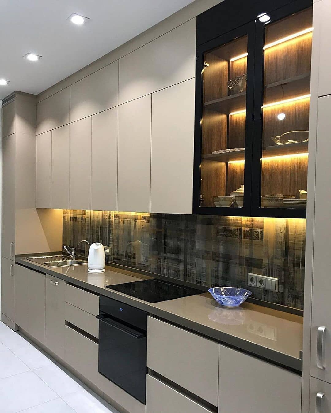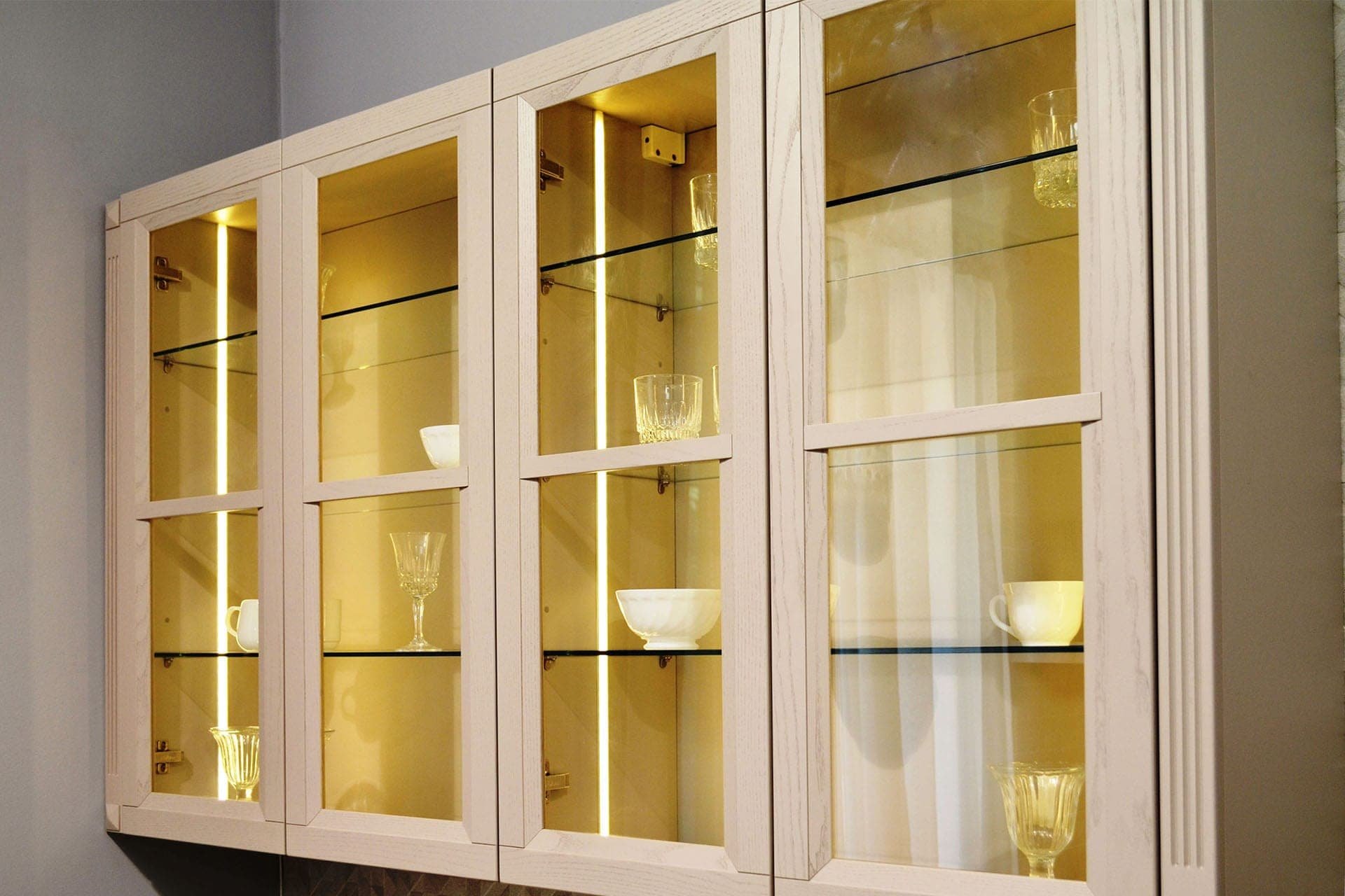 Комментируют Стеклянный шкаф на кухне с подсветкой: