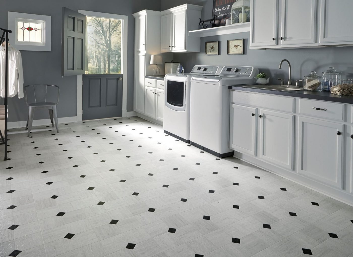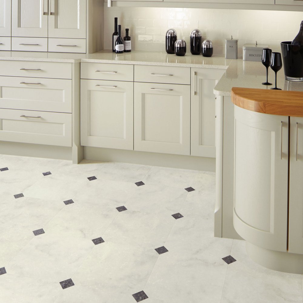 Линолеум белый с черными ромбиками