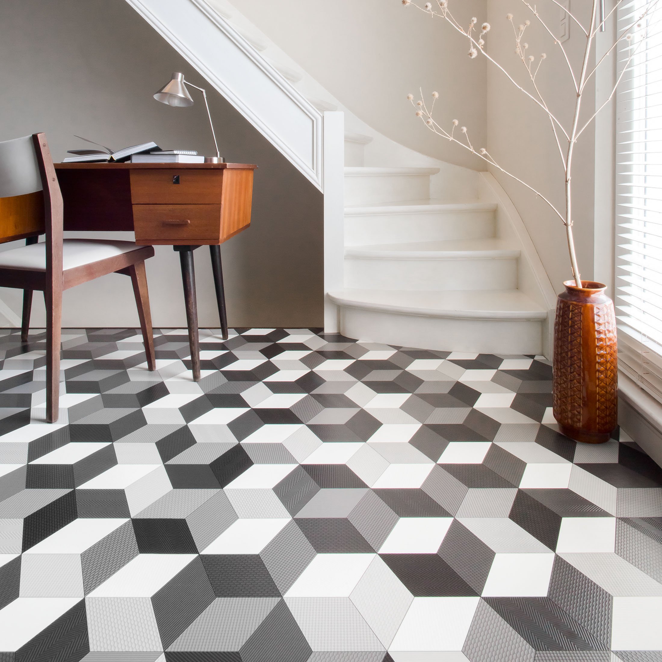 Плитка ПВХ черно белая