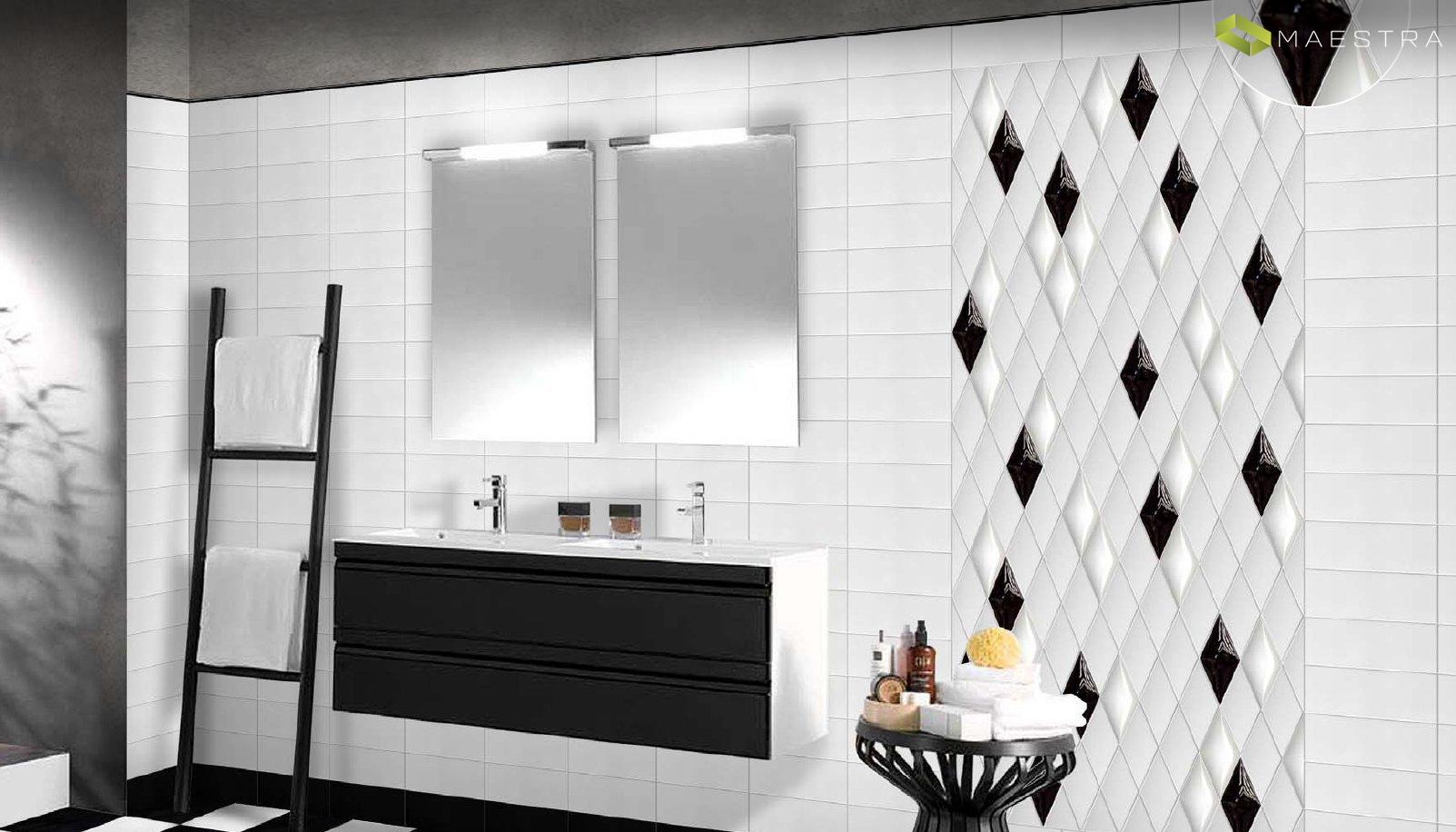 Белая плитка с черными вставками