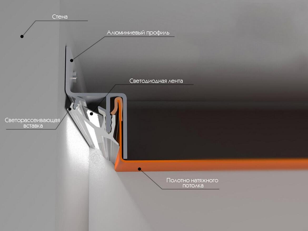 Парящий профиль для натяжных потолков с подсветкой