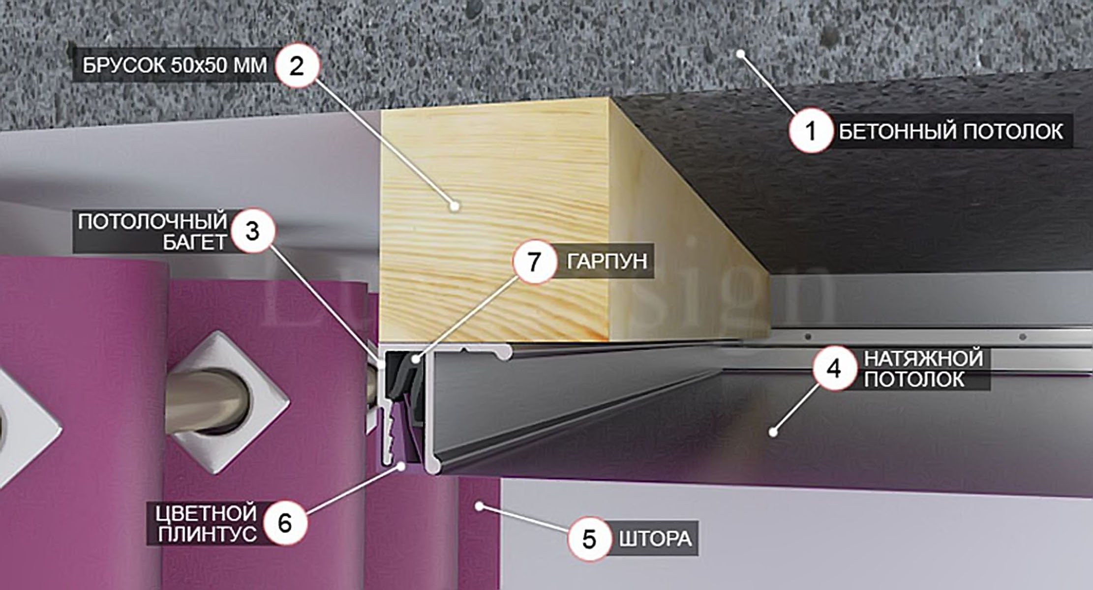 Натяжной потолок гарпунная система