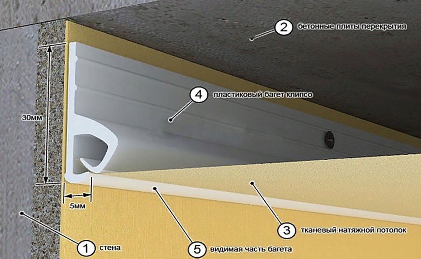 Габариты багета для натяжных потолков