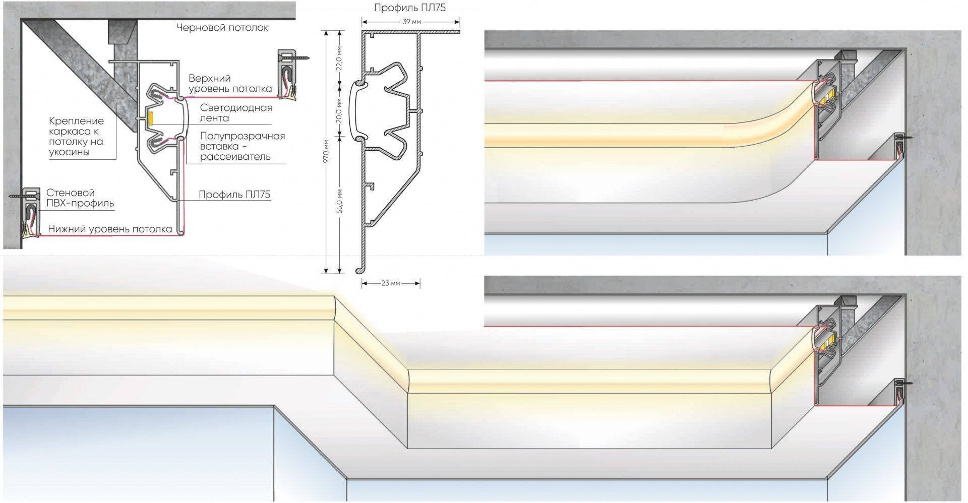 Монтаж профиля для натяжного потолка