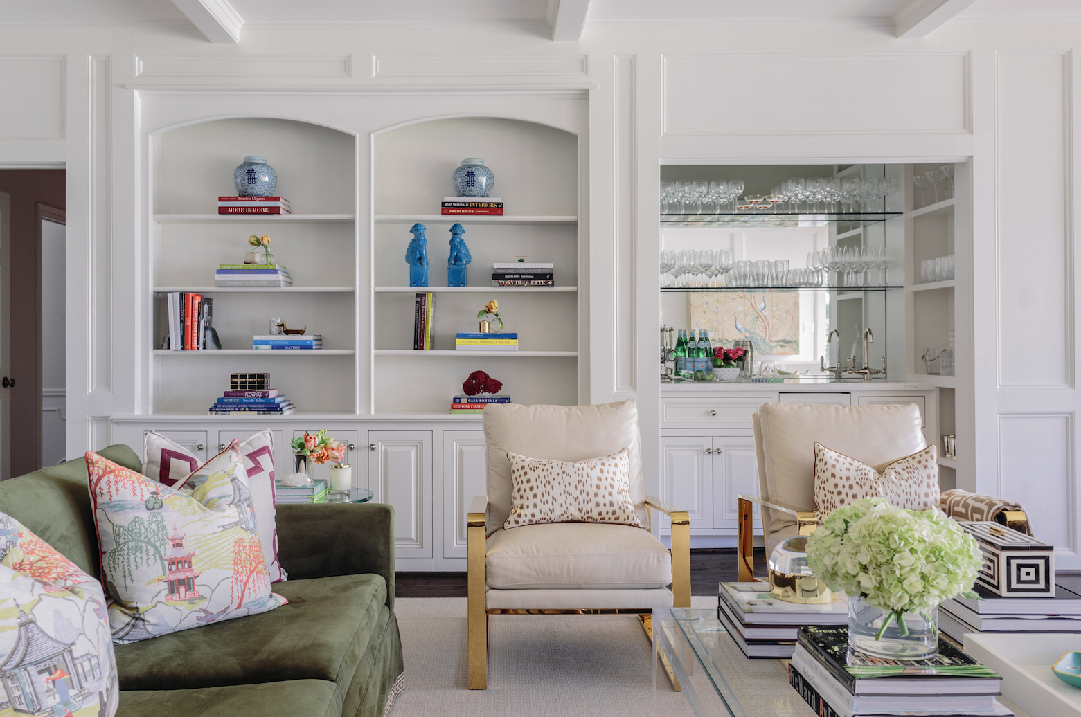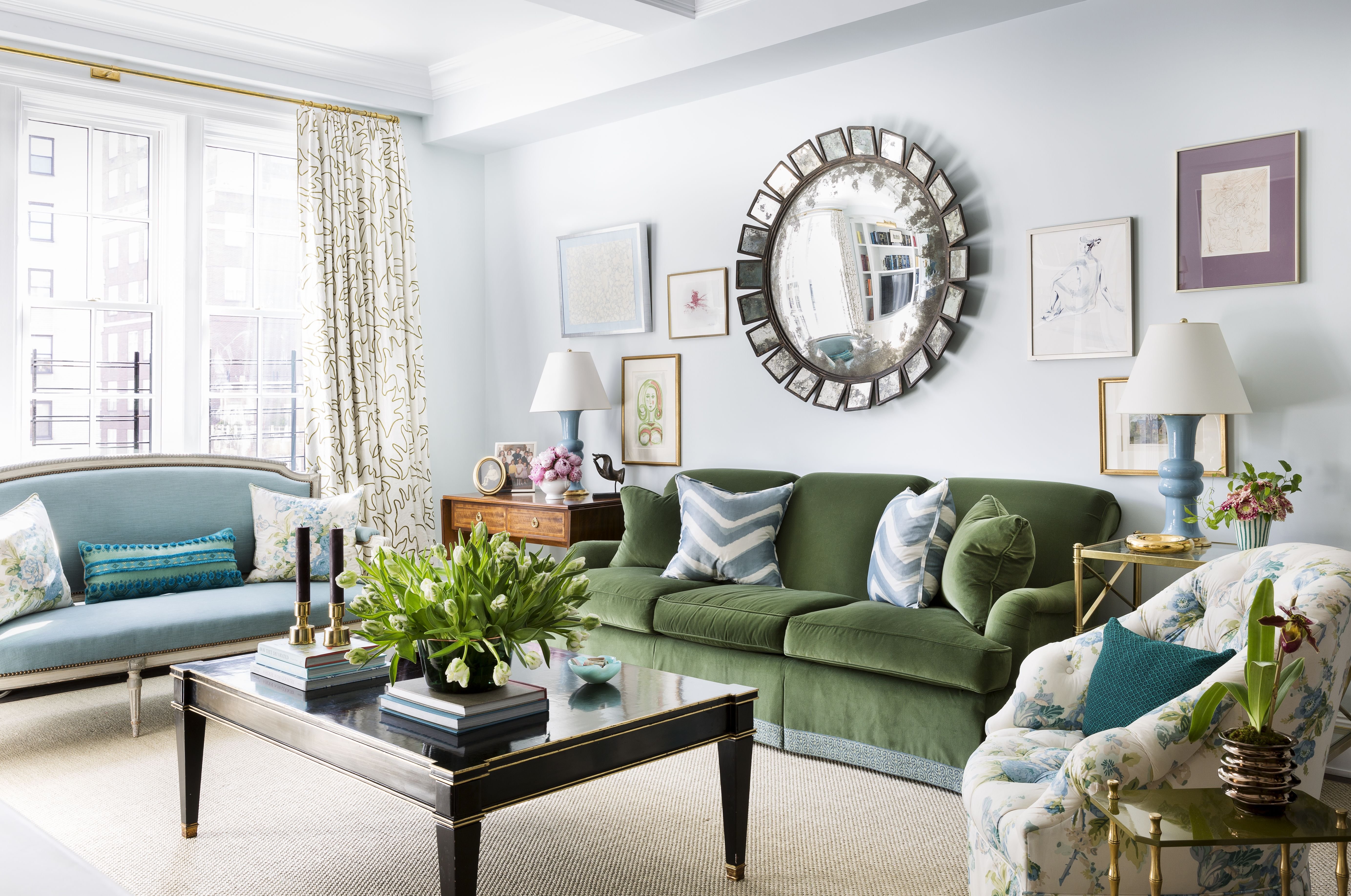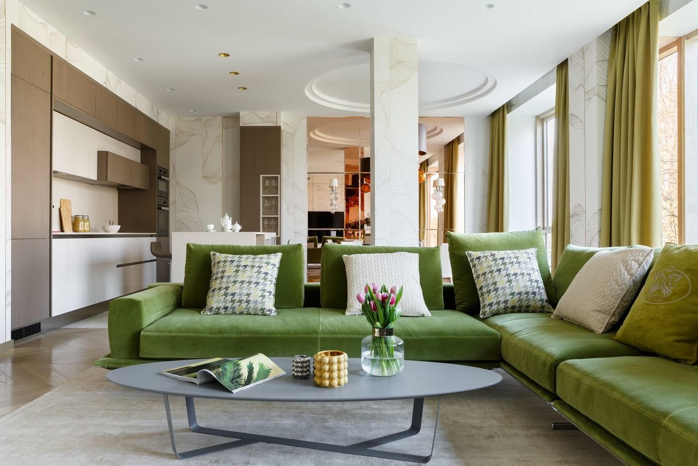 Гостиная Неоклассика с зеленым диваном