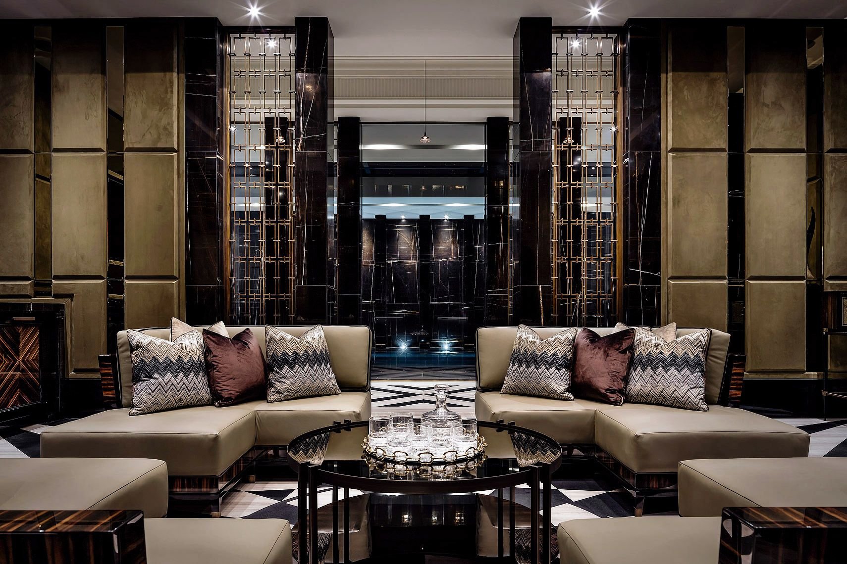 Сочетание мрамора и текстиля в интерьере