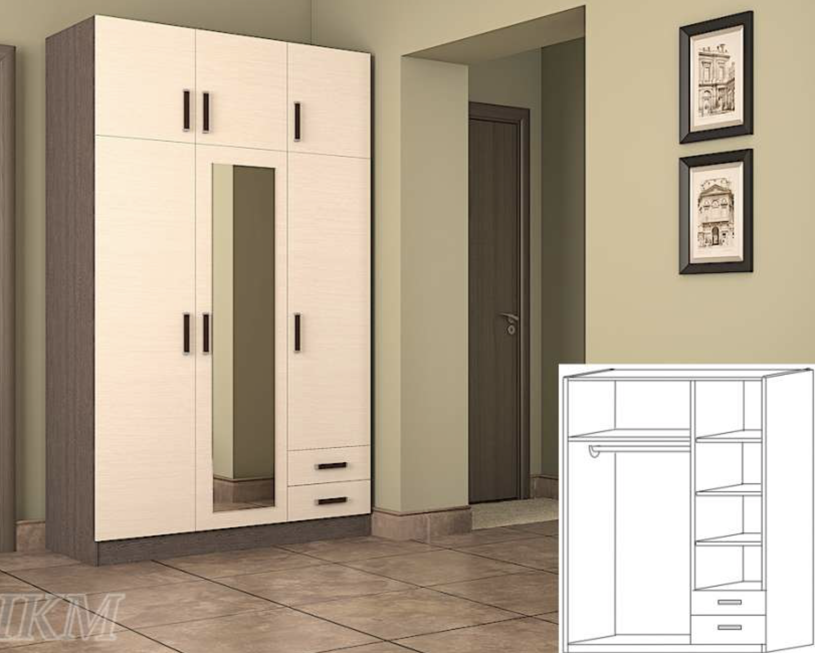 Трехстворчатый шифоньер с антресолями