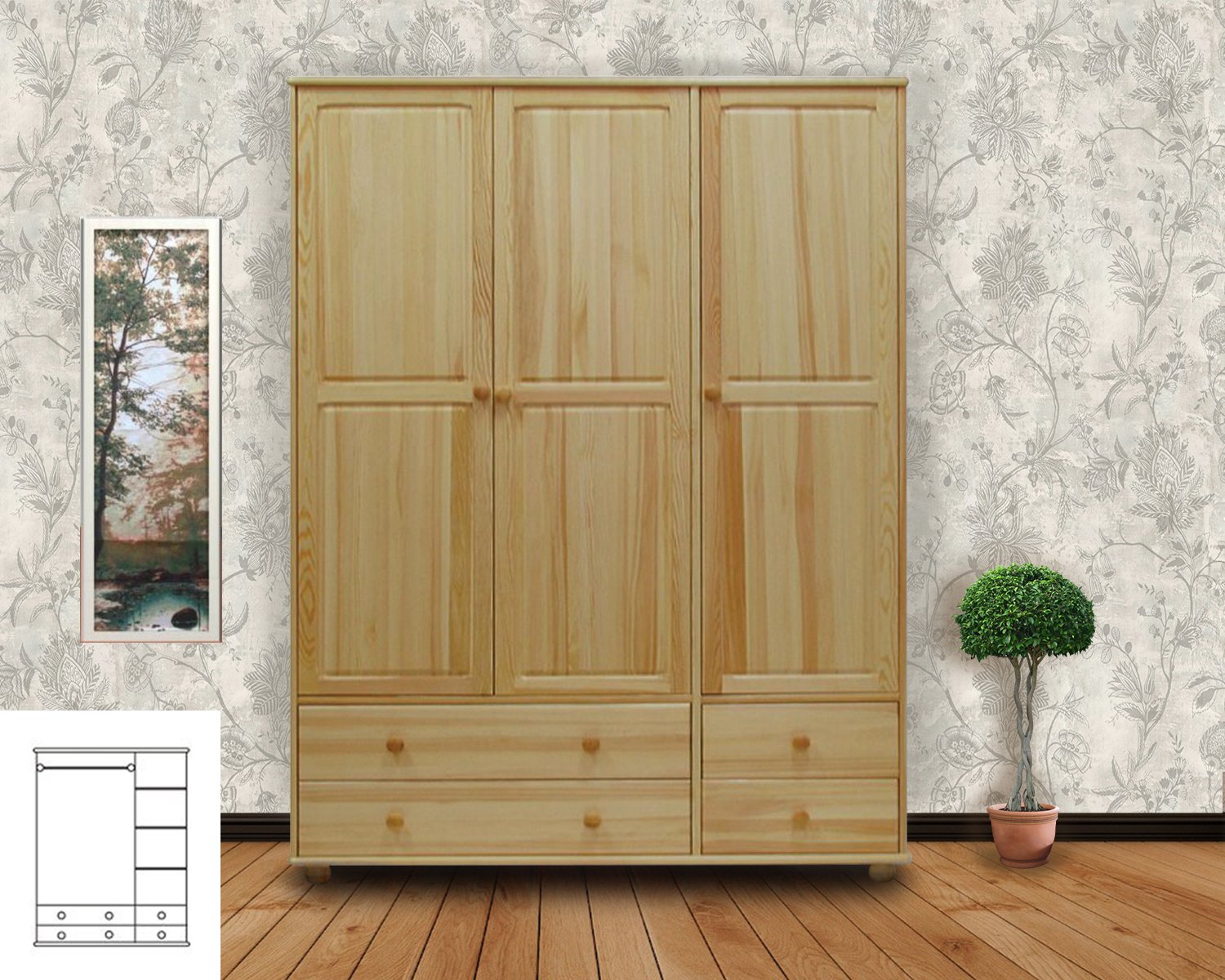 Шкаф 3хдверный с 3мя ящиками Ванесса-4
