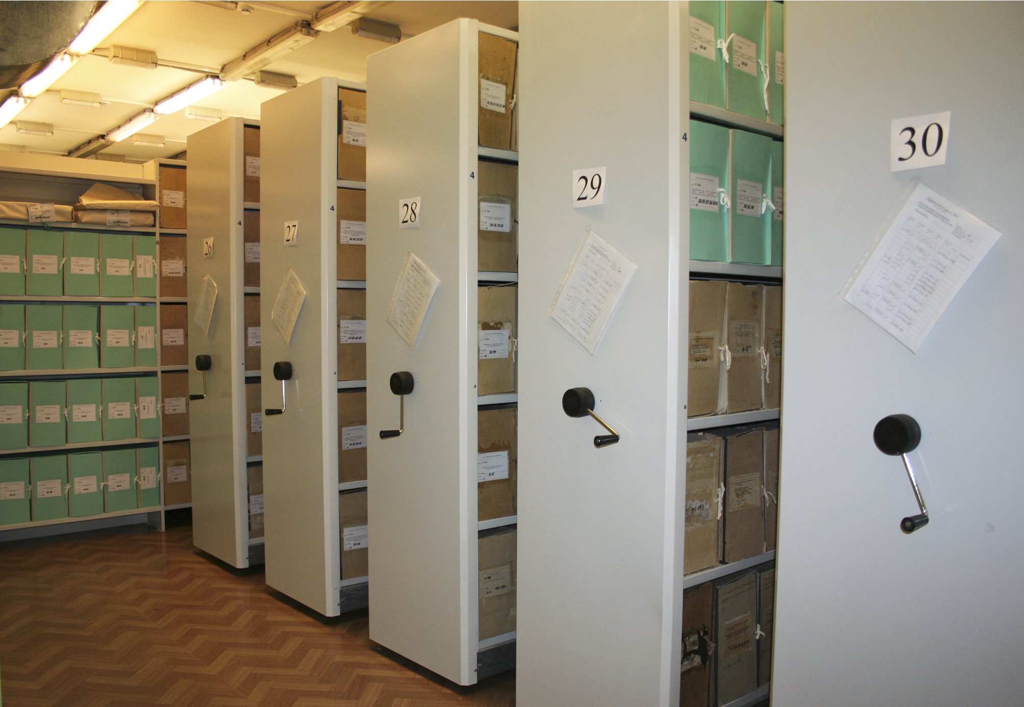 Стеллажи в архиве нумеруются