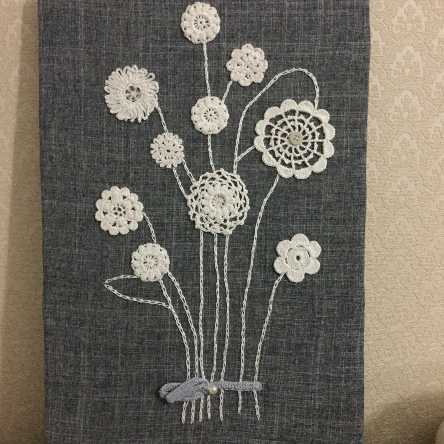 Панно с вязаными цветами