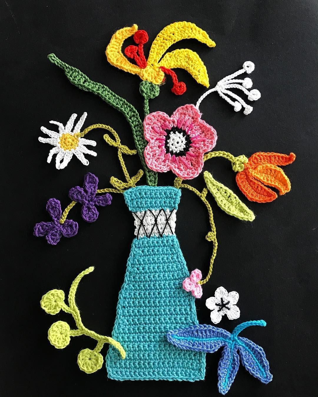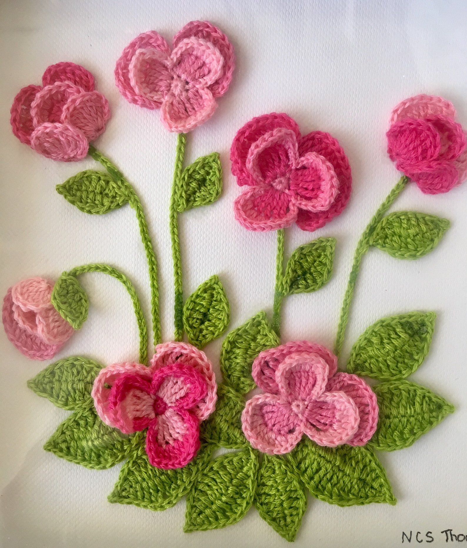 Панно вязаные цветы