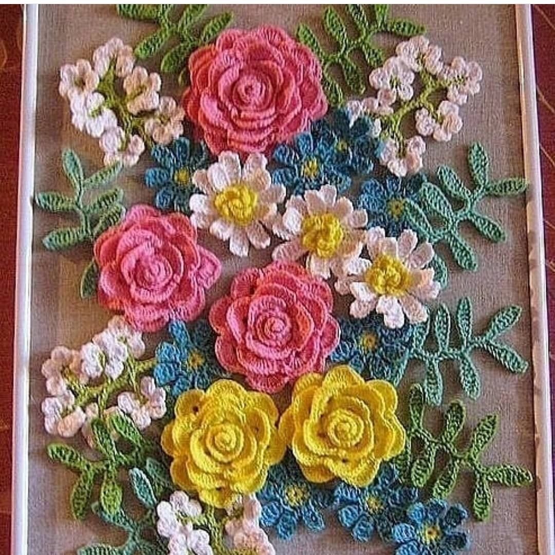 Цветочное панно крючком