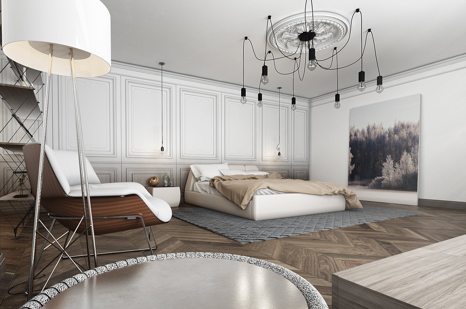 Спальня в стиле лофт с элементами классики