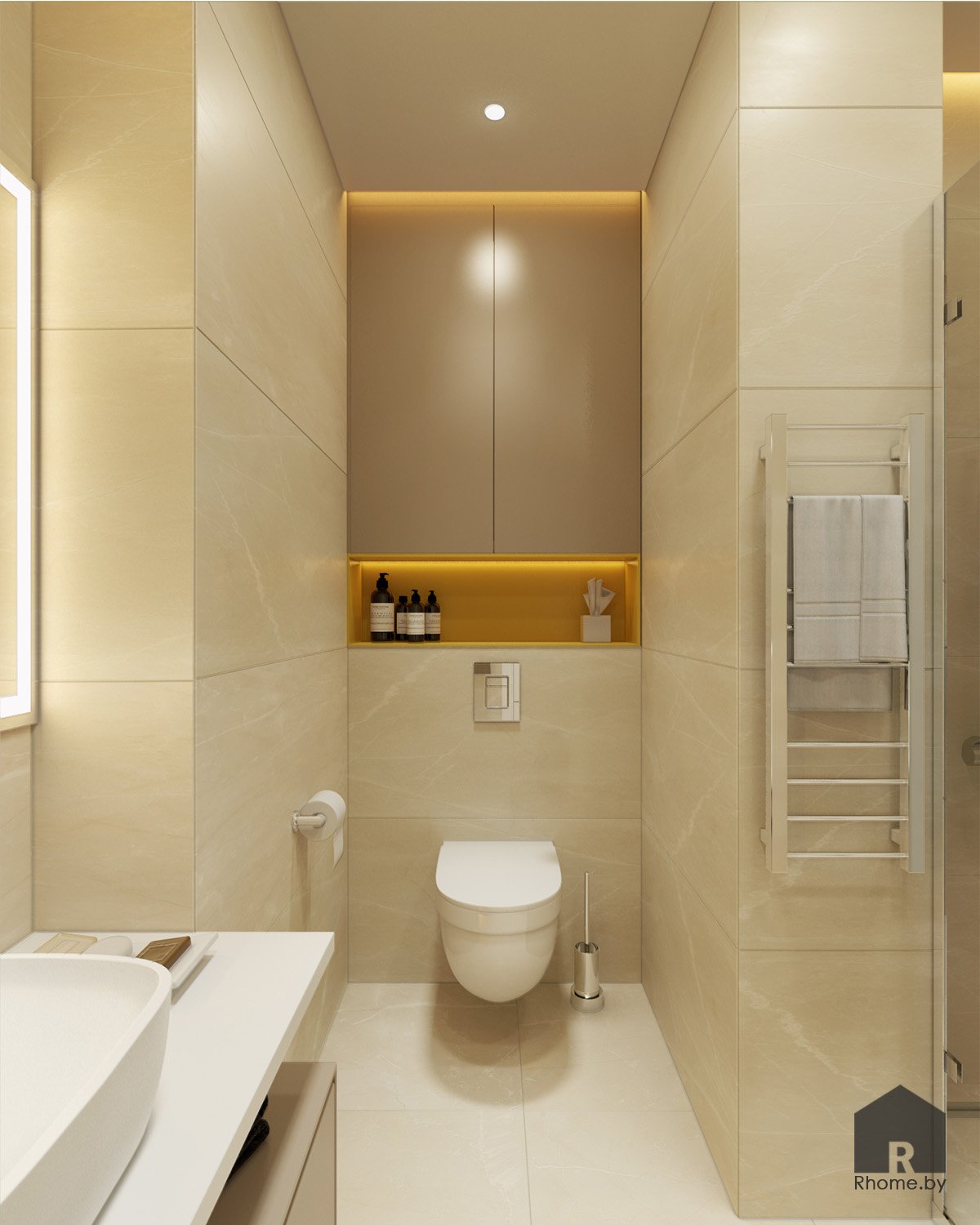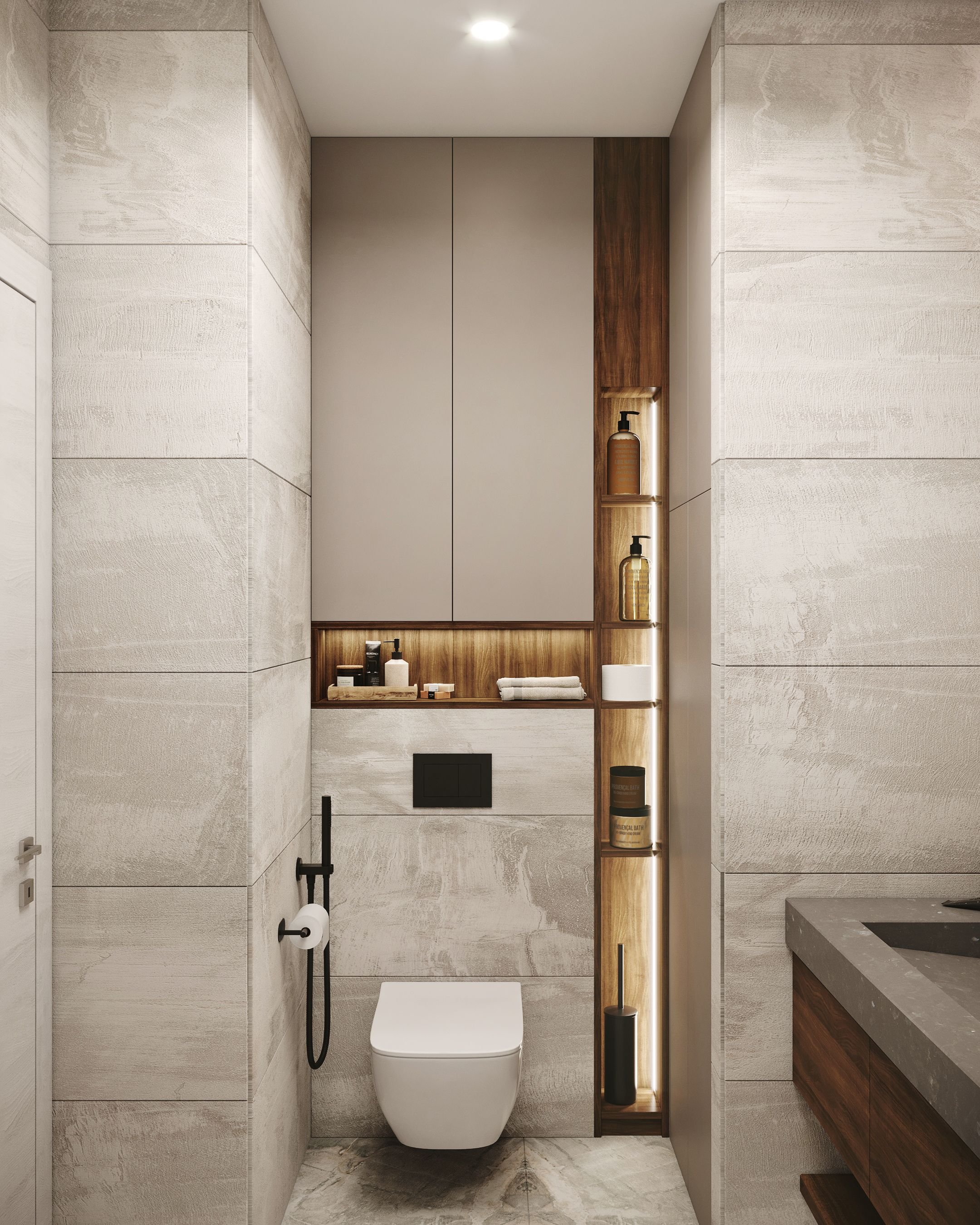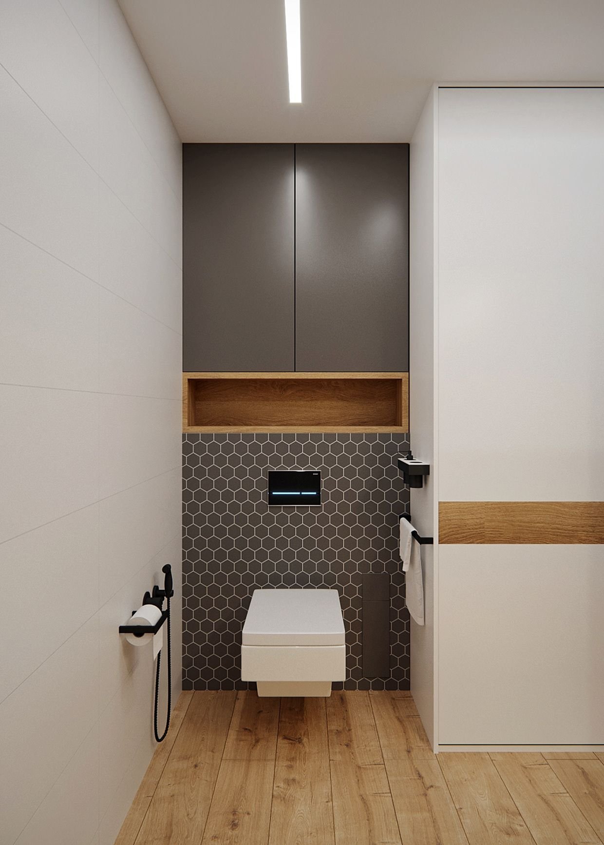 Комментируют Дизайн туалета с инсталляцией и шкафом:
