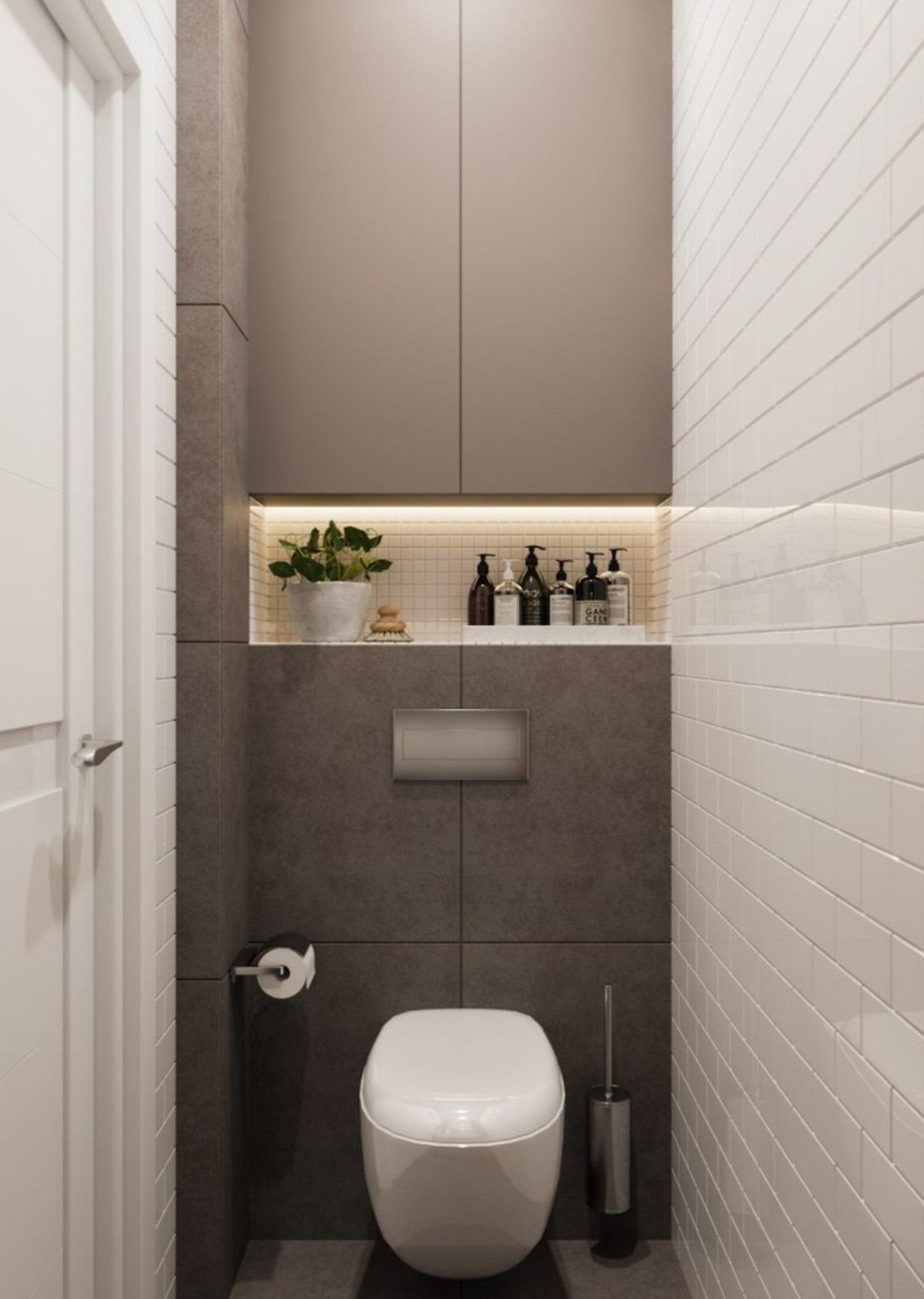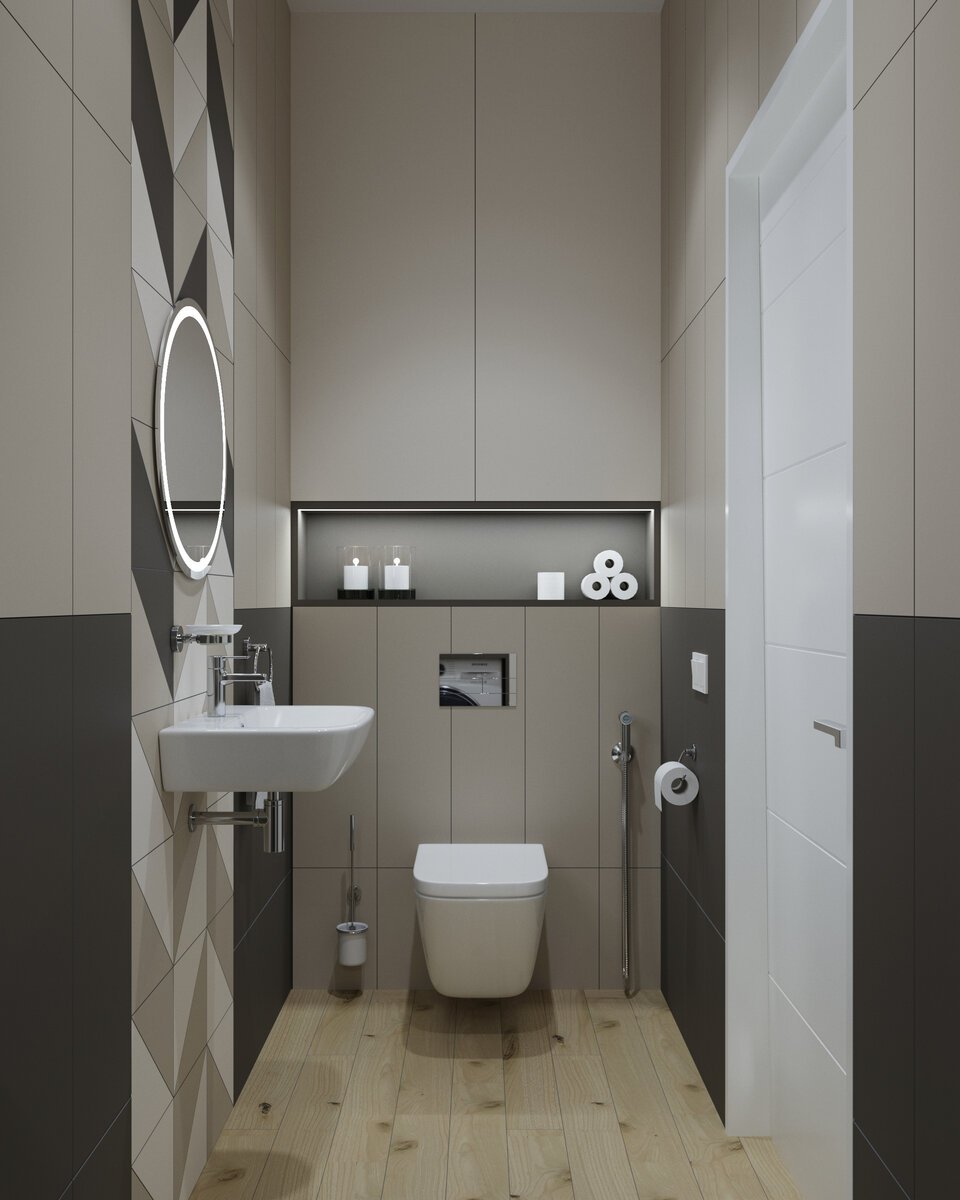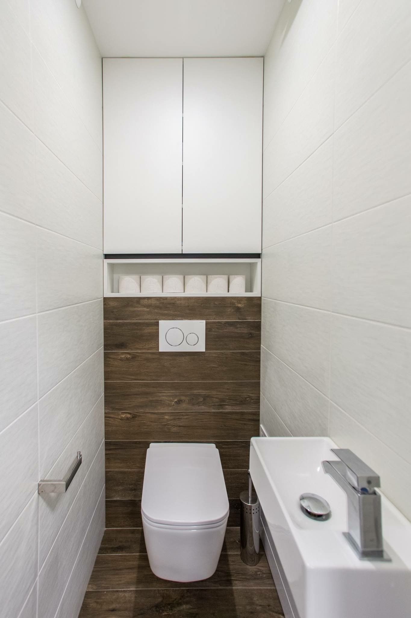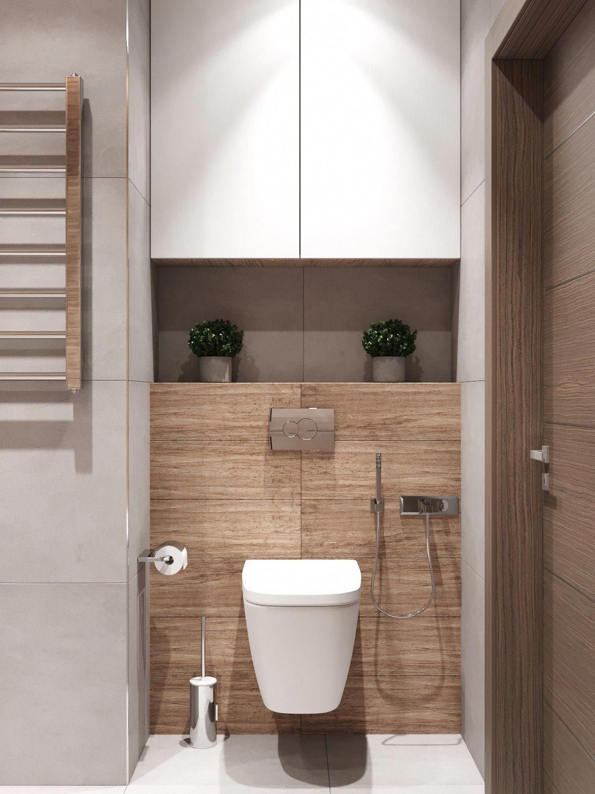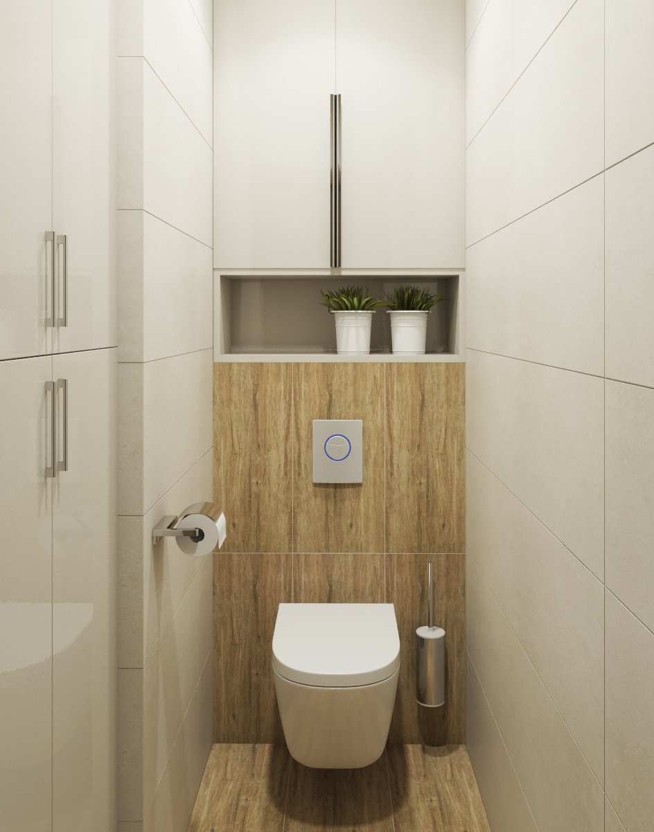 Дизайн туалета с инсталляцией и шкафом
