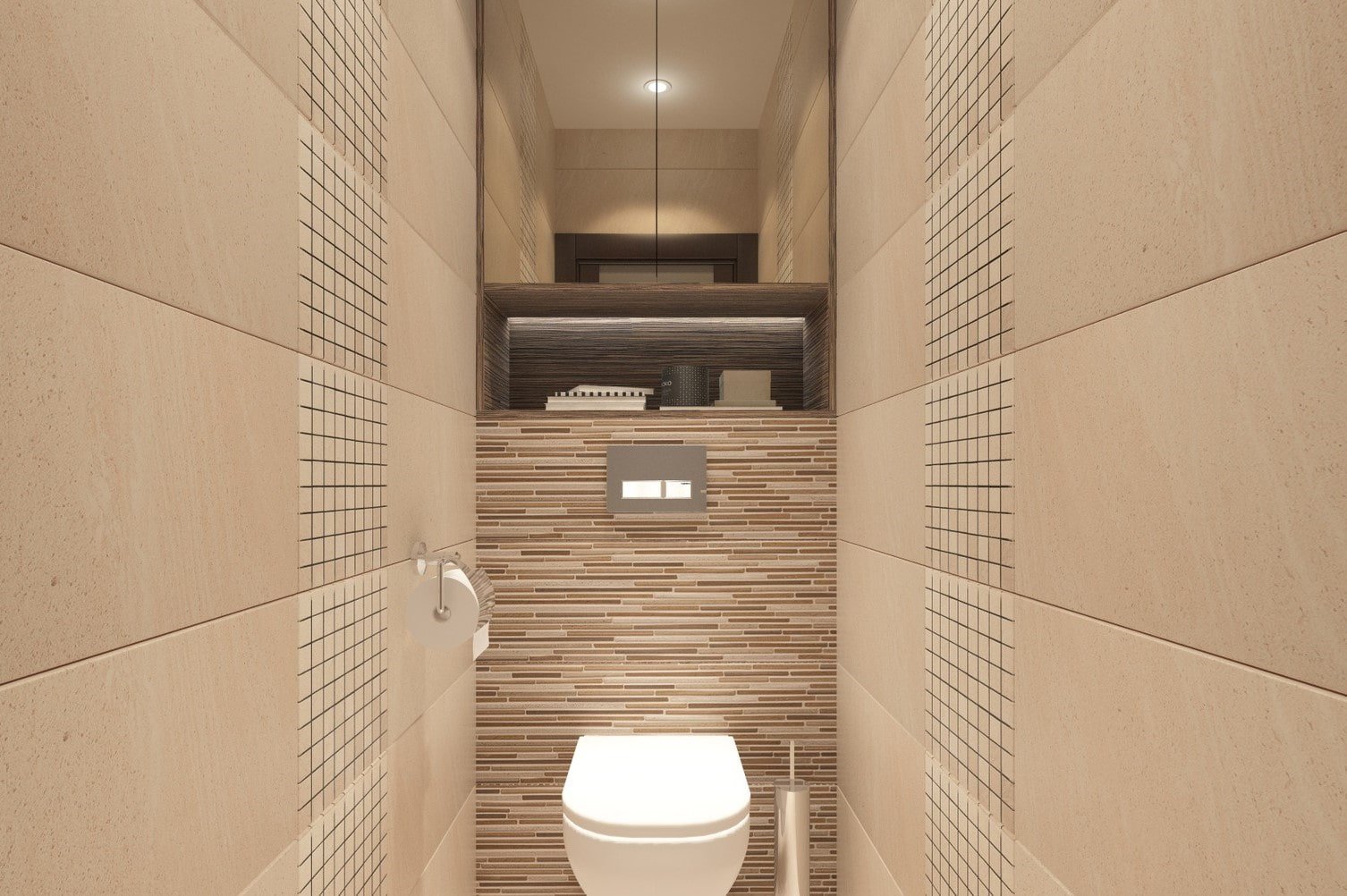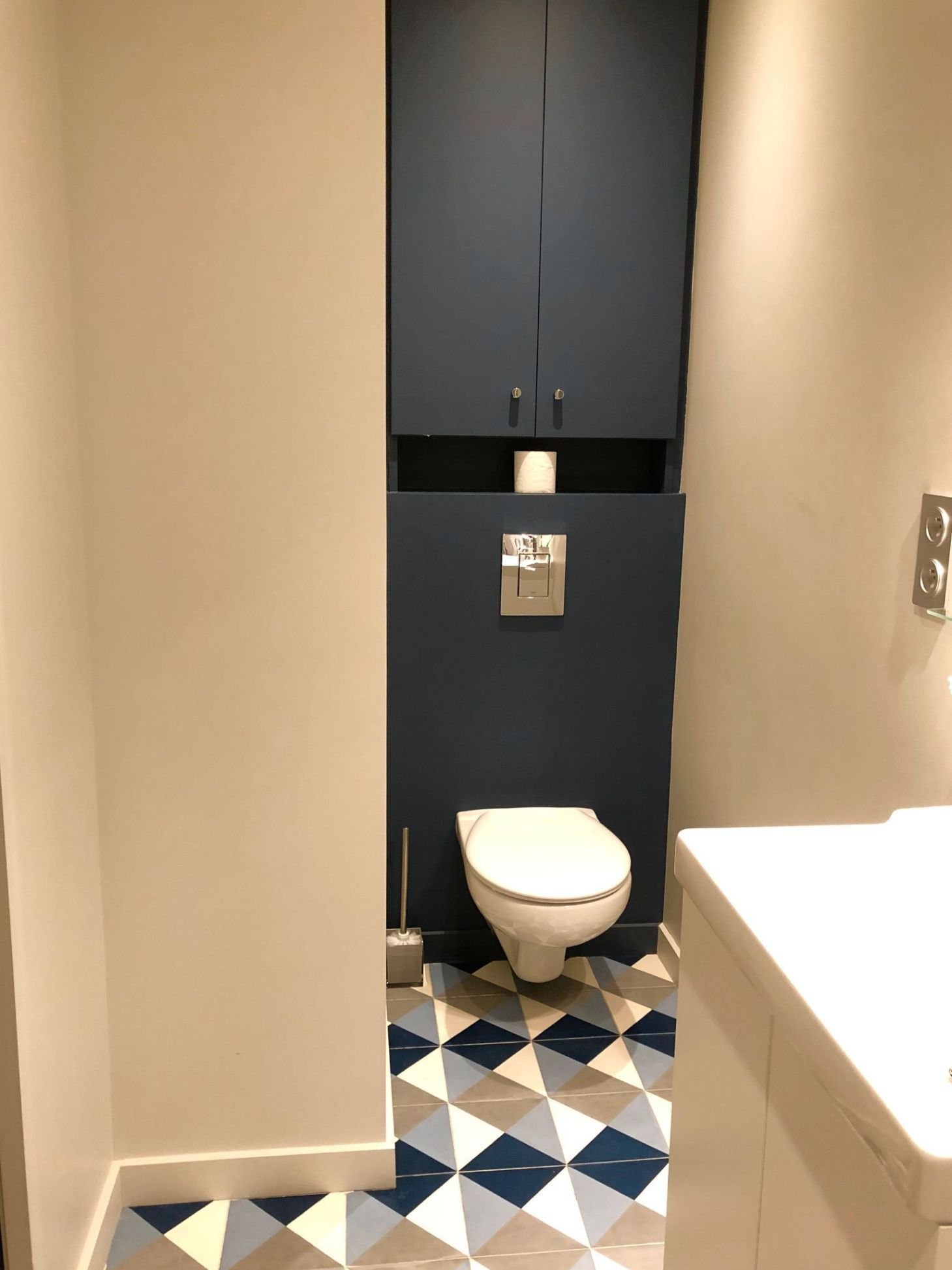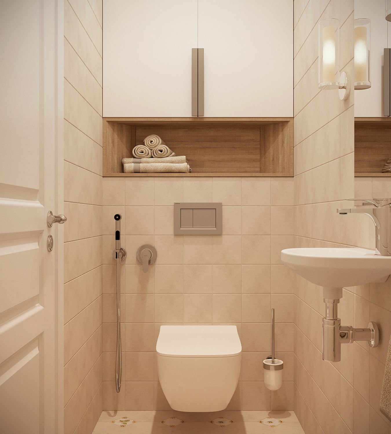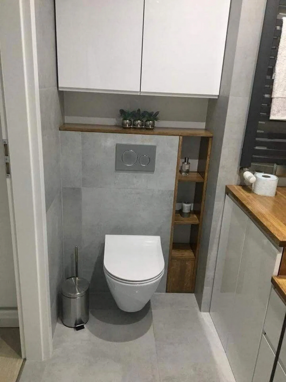 Дизайн туалета с инсталляцией и шкафом