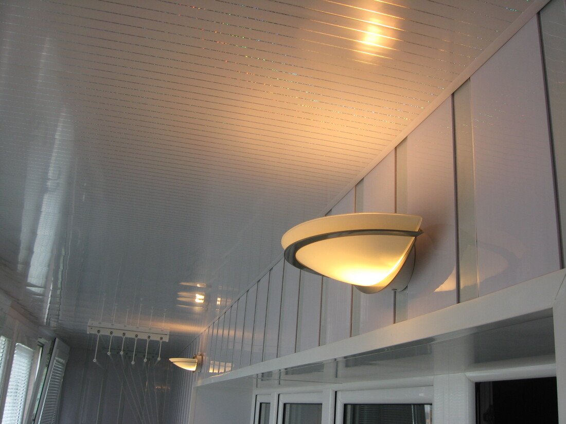 Отделка потолка на балконе