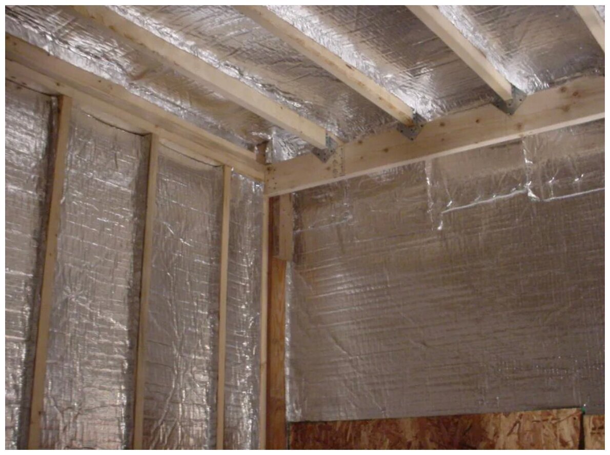 Отделка гаража фольгированным утеплителем