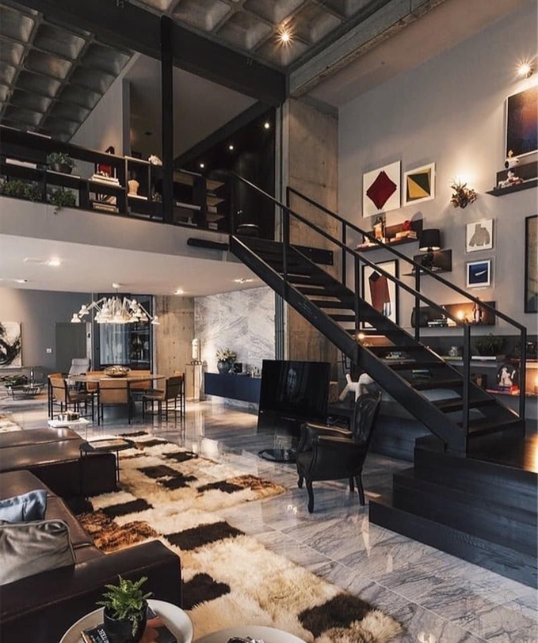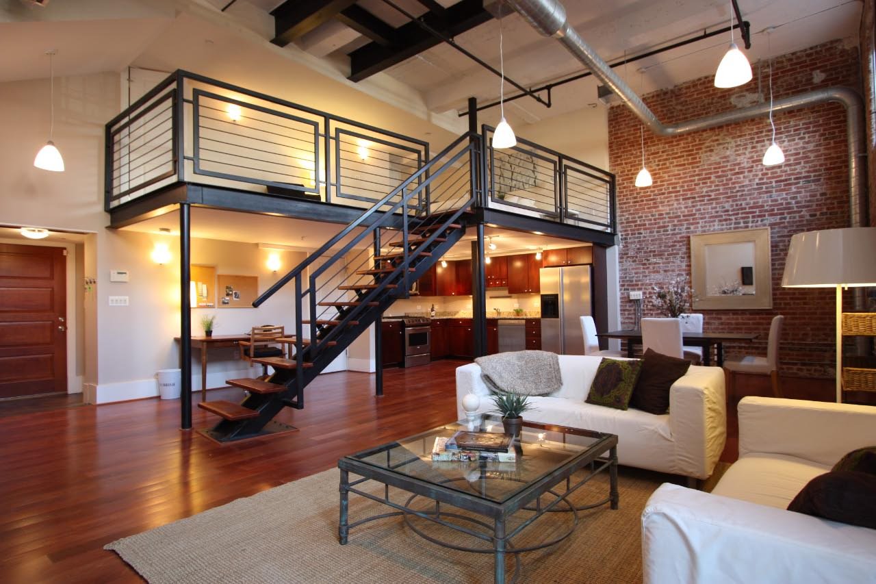 Лестница на антресольный этаж в стиле лофт