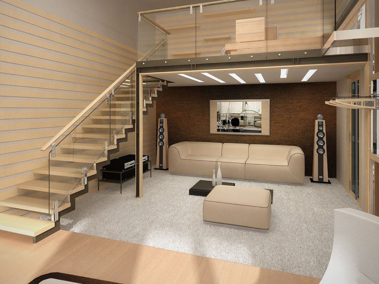 Лестница в гостиной со вторым светом