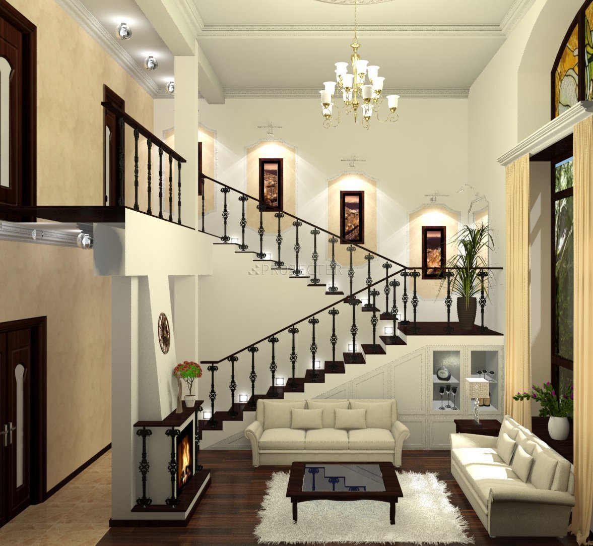 Гостиная с лестницей