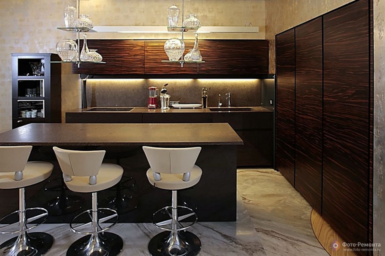 Кухня арт деко с барной стойкой
