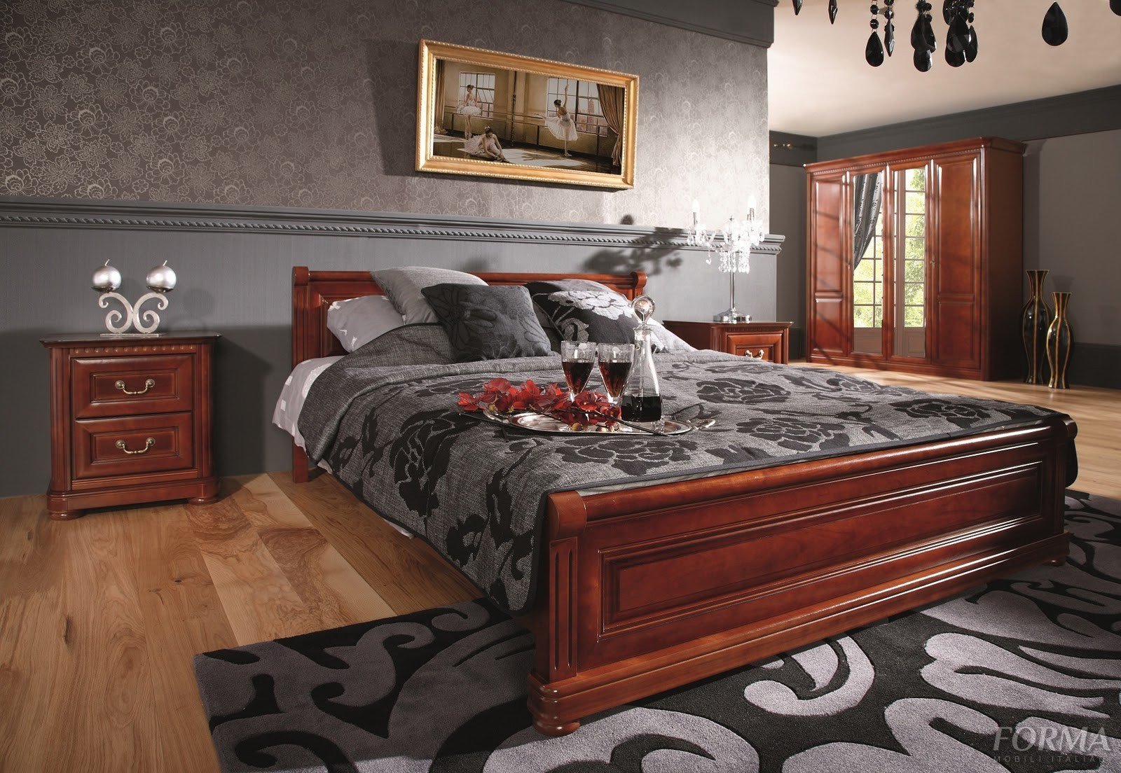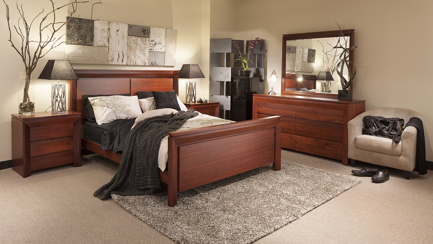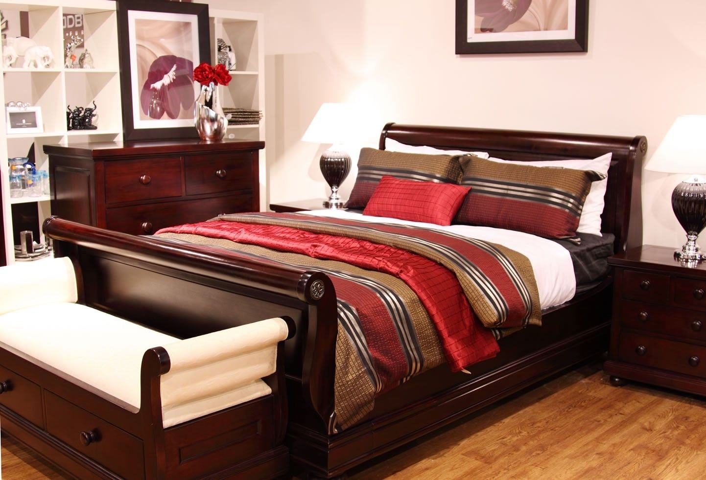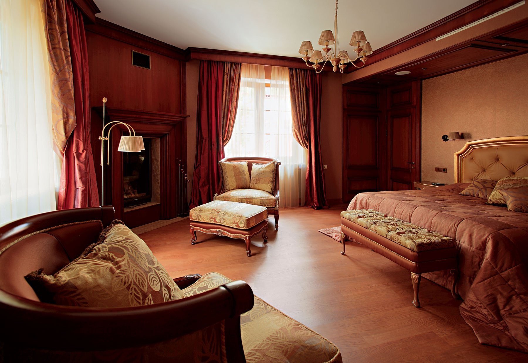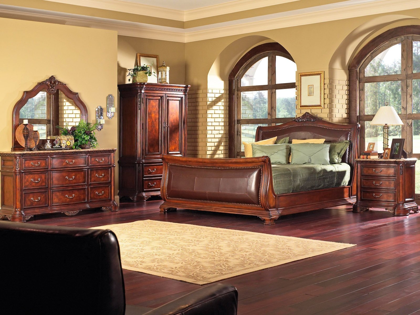 Спальня с мебелью из красного дерева