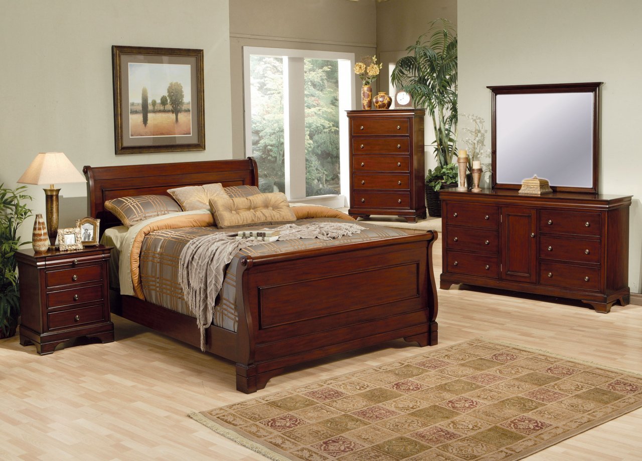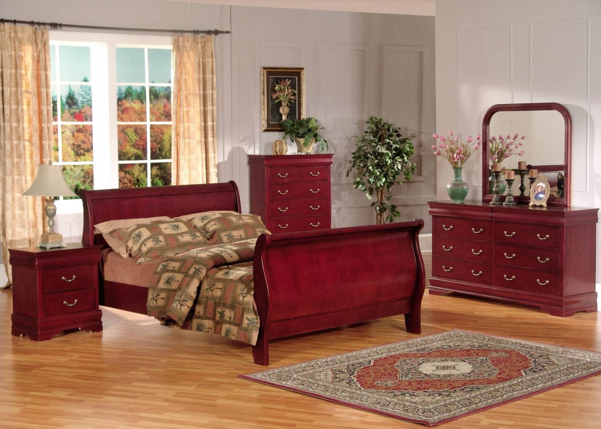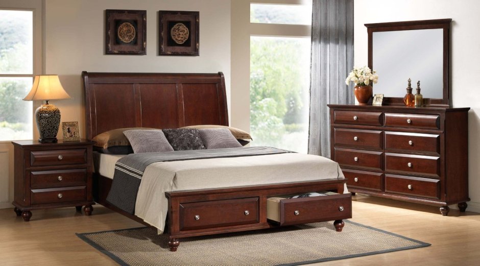 Спальня с мебелью красное дерево