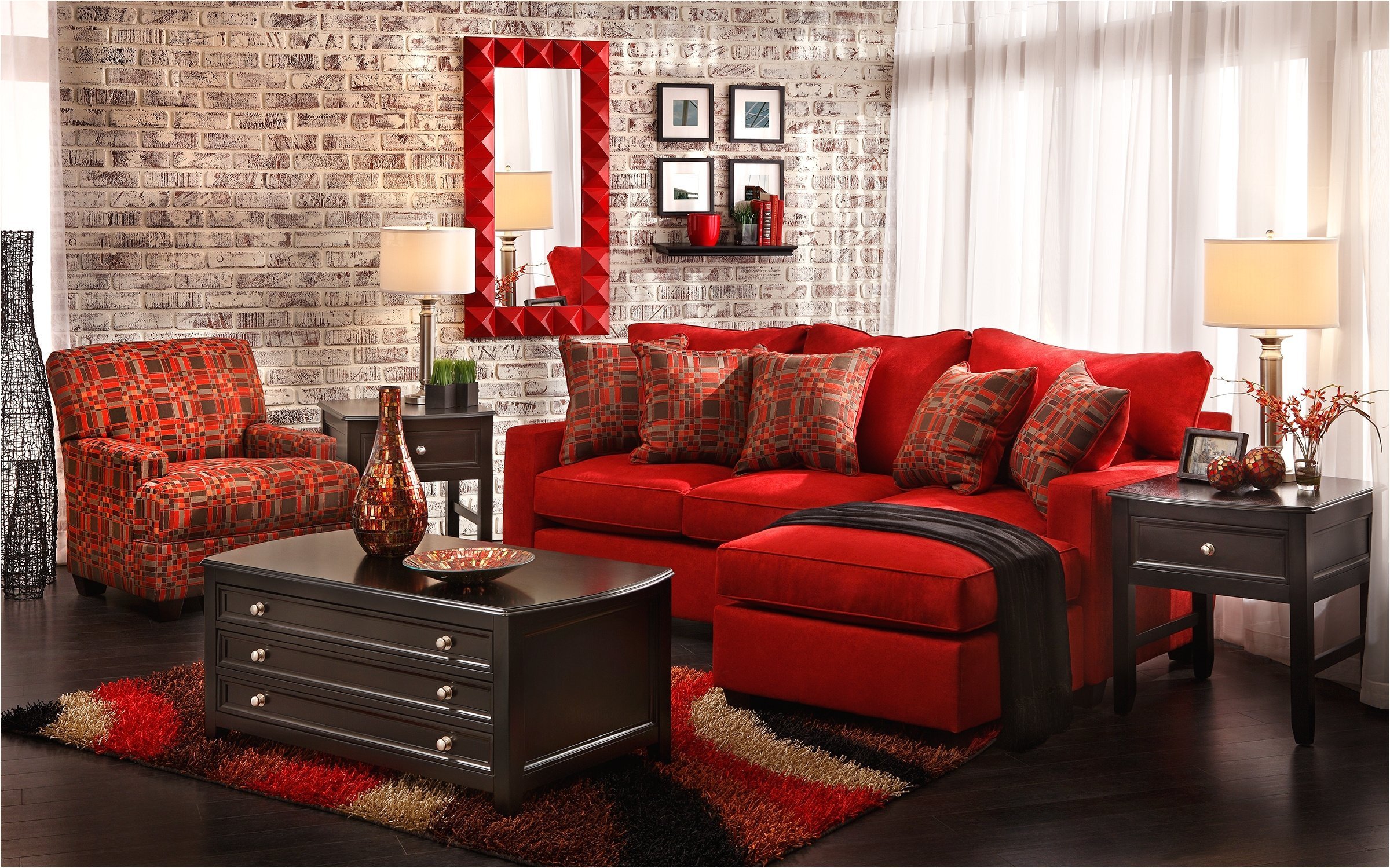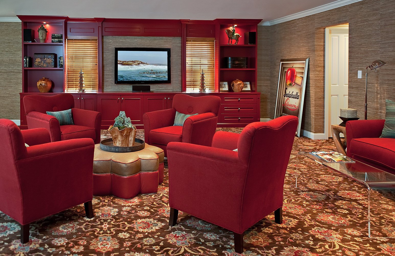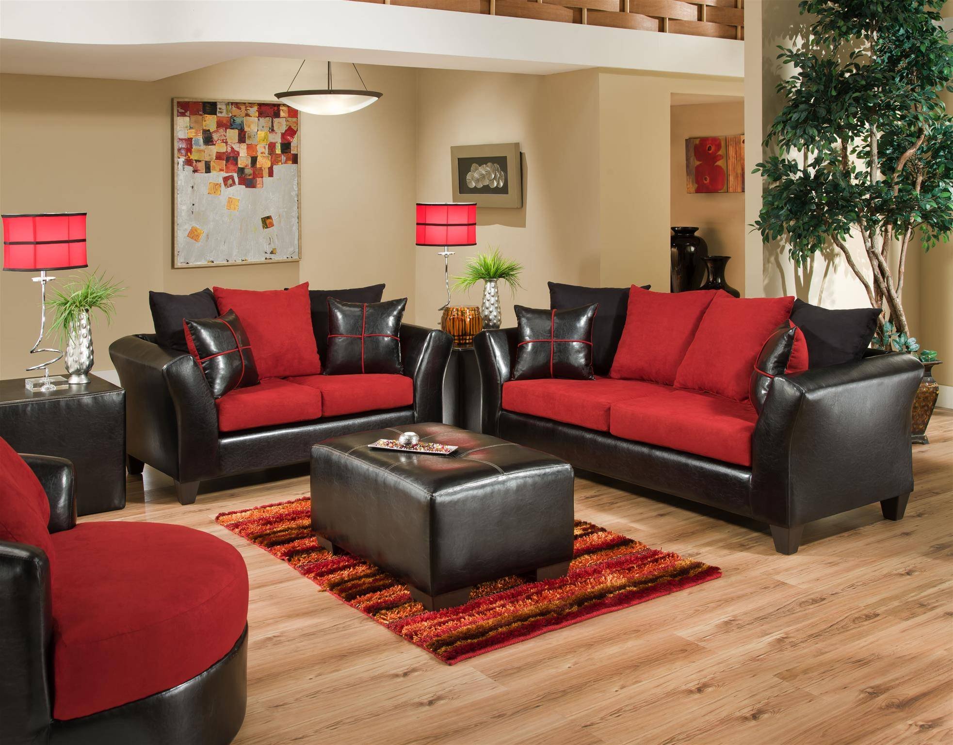 Гостиная с красной мебелью