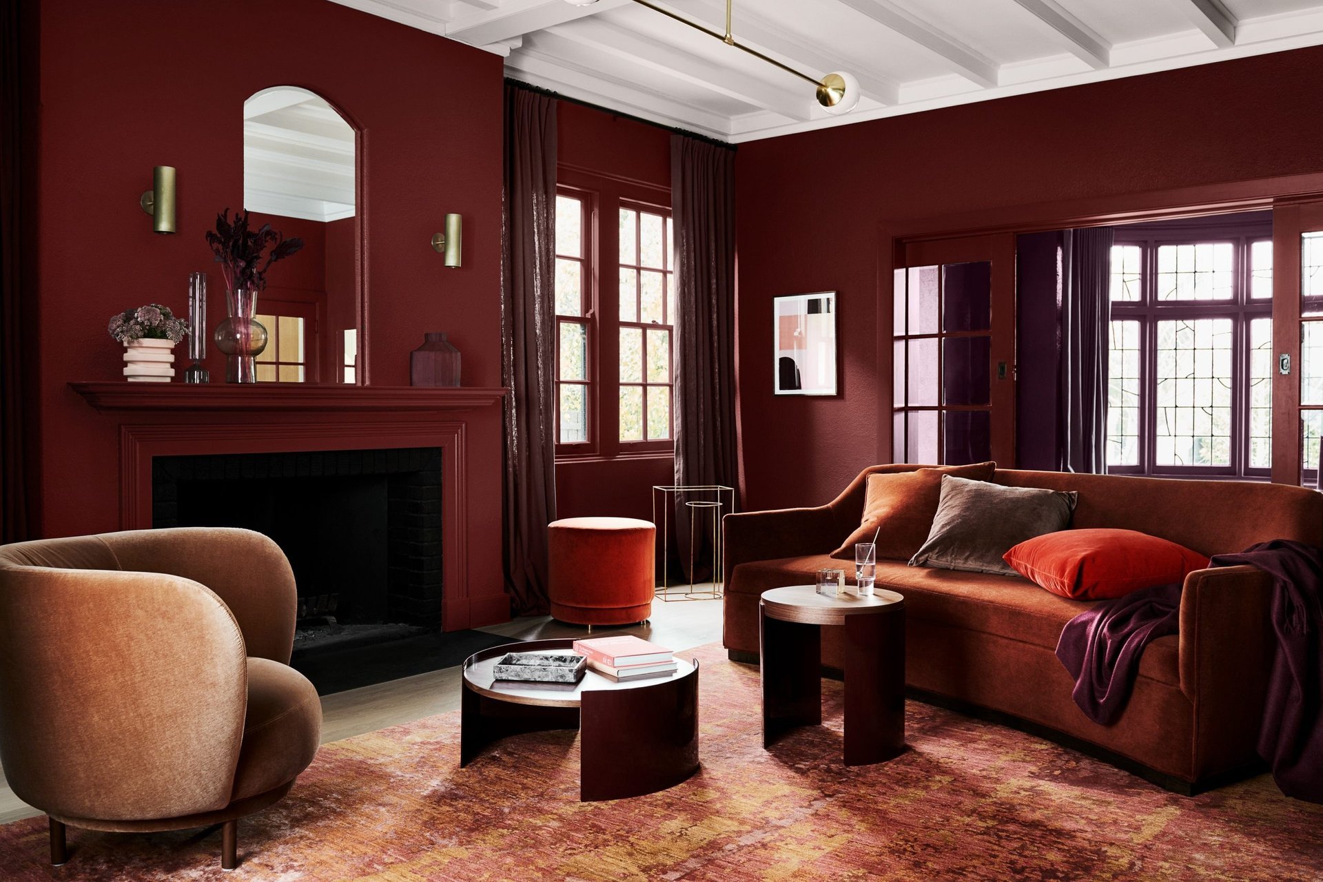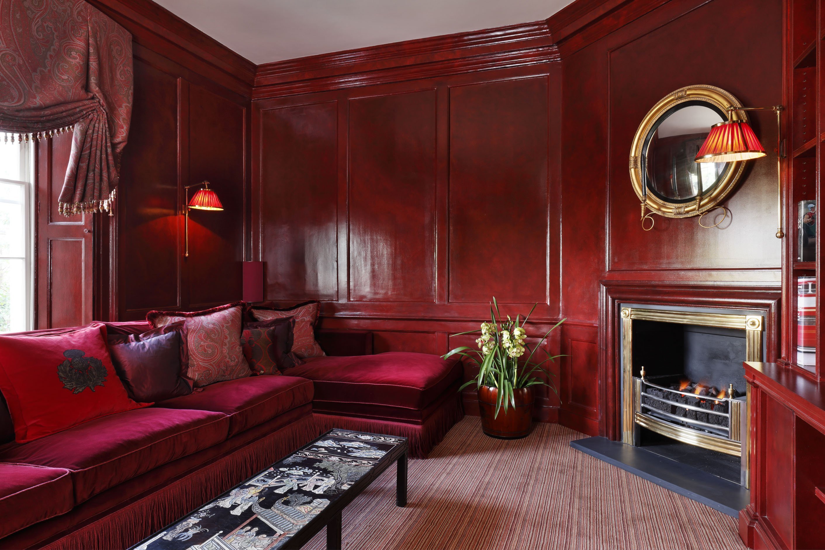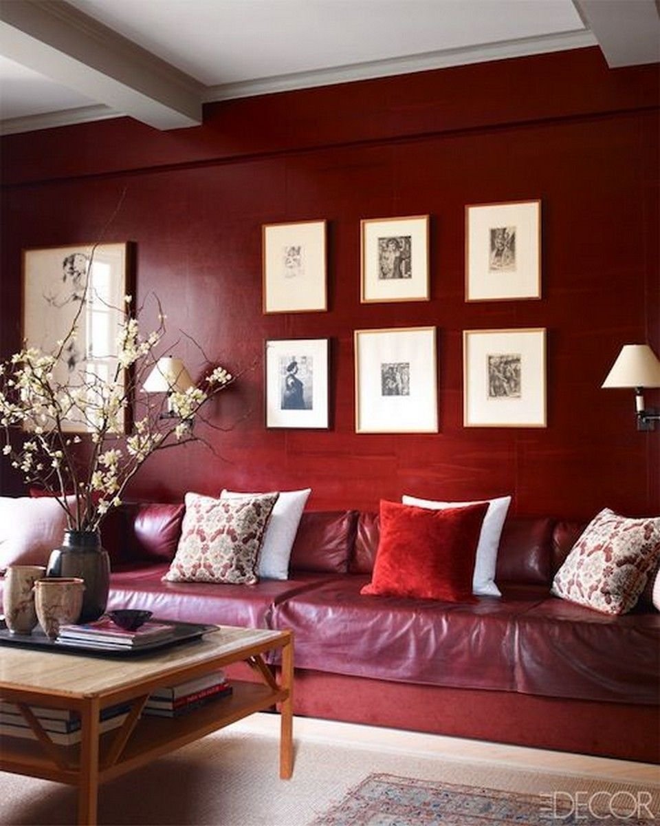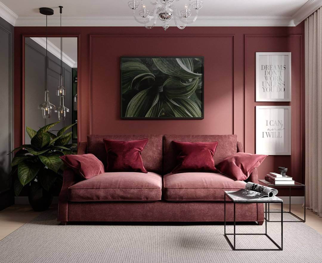 Бордовые стены в гостиной