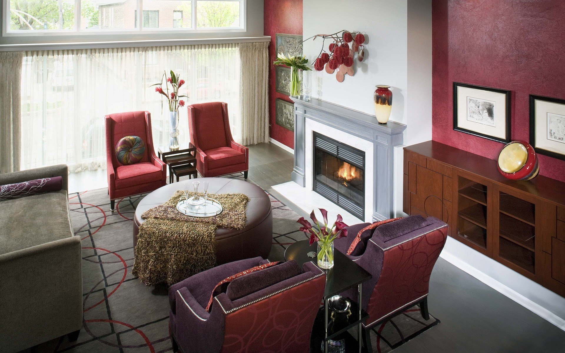 Гостиная в бордовых тонах