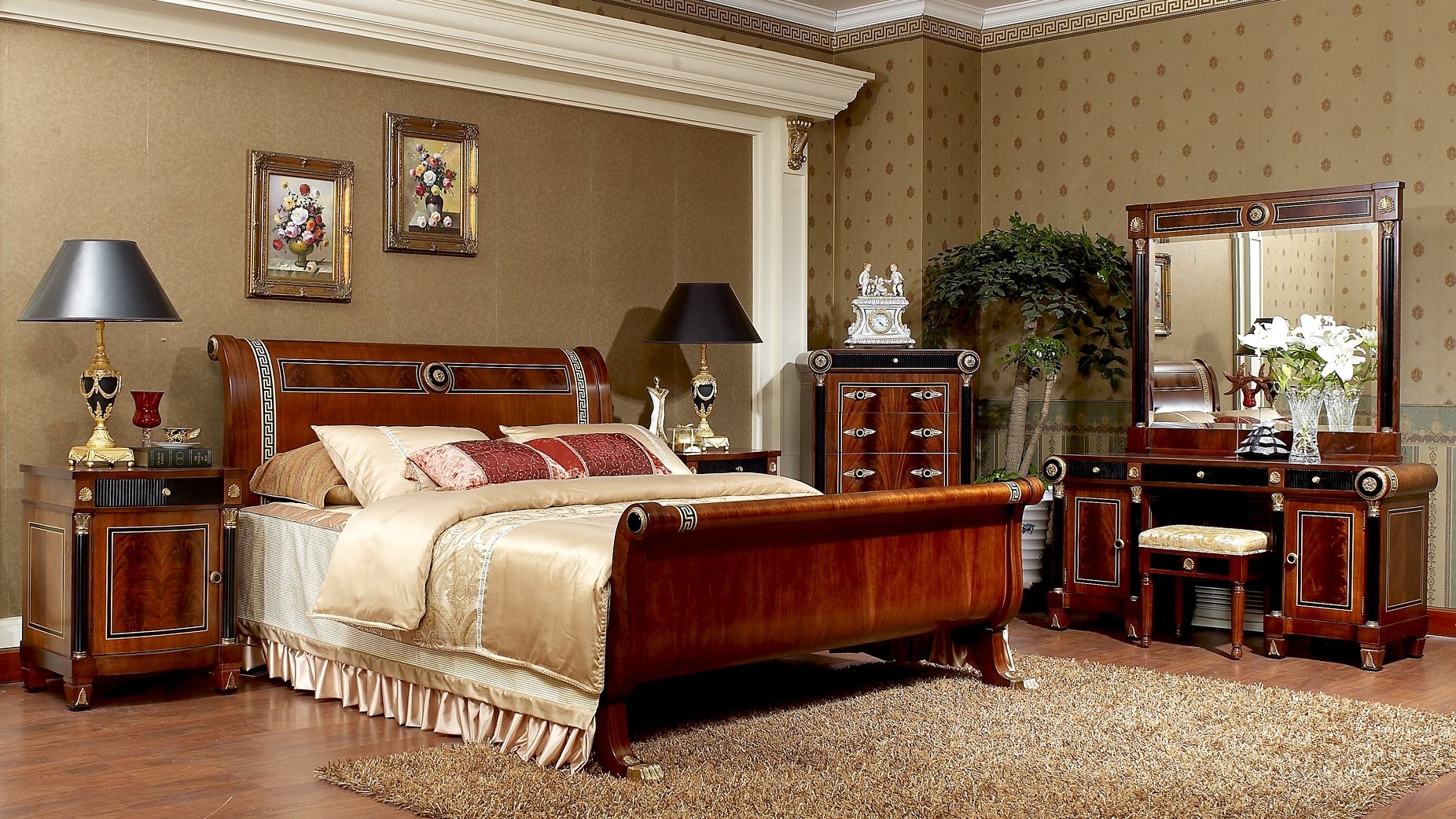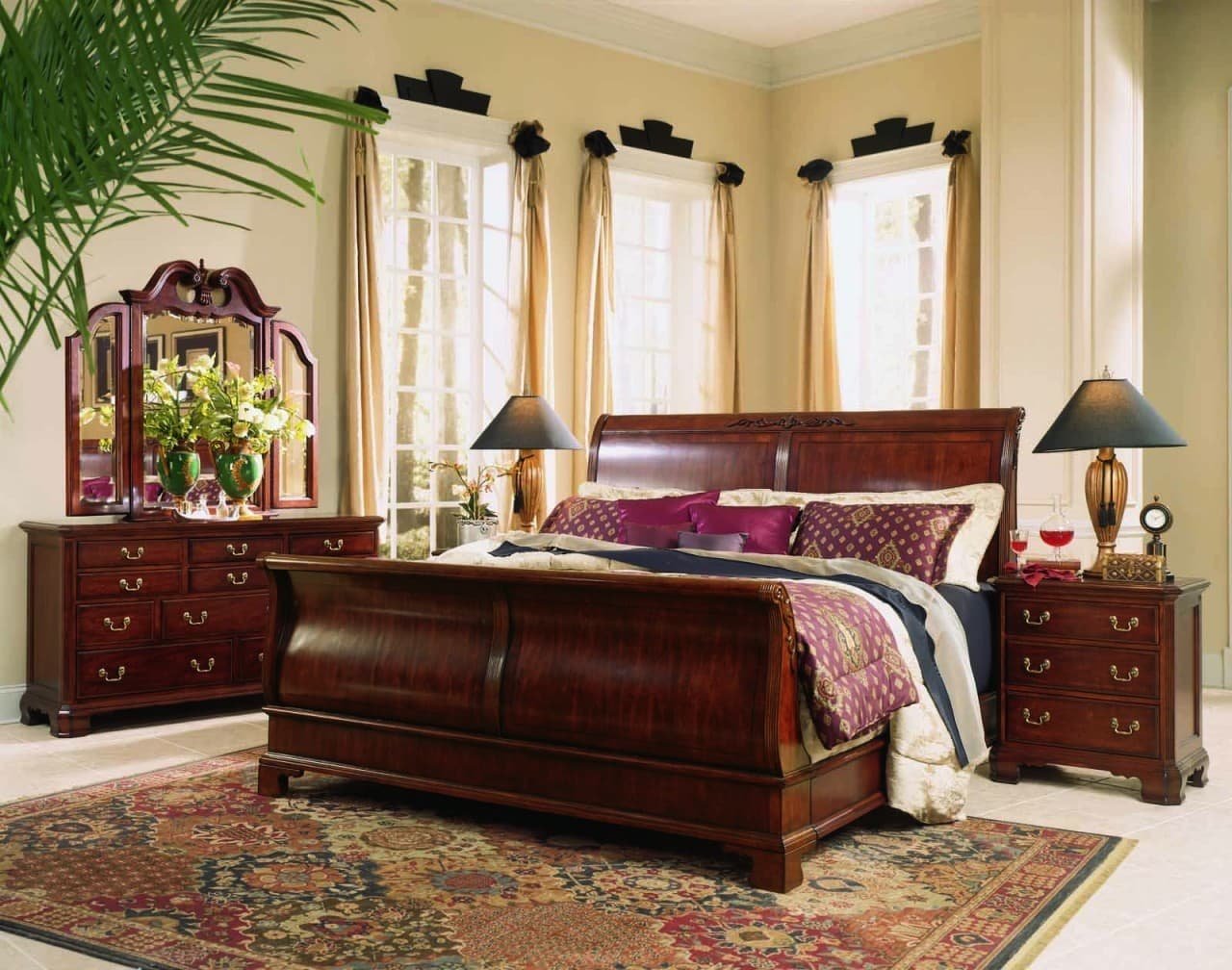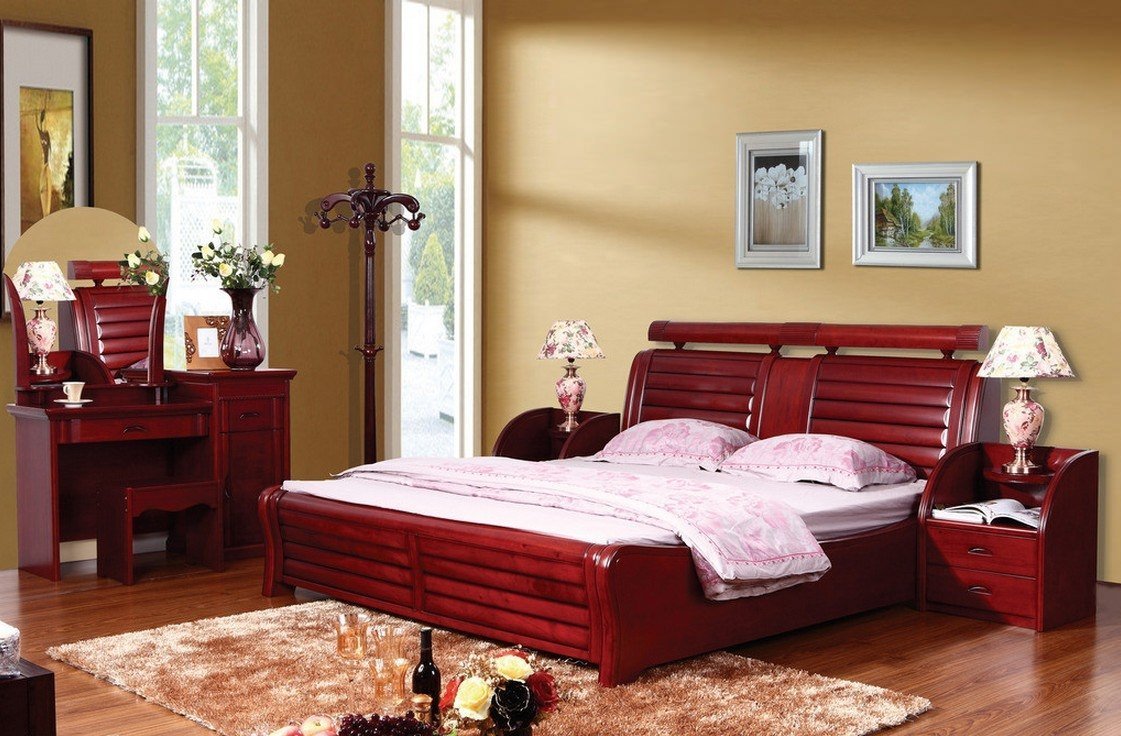 Мебель из красного дерева в интерьере спальни