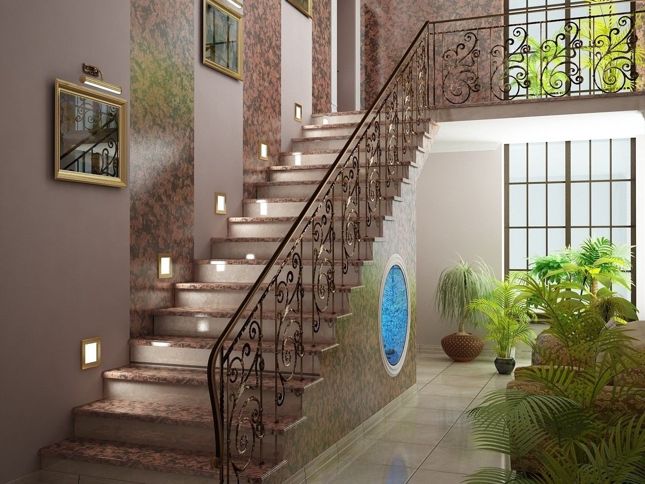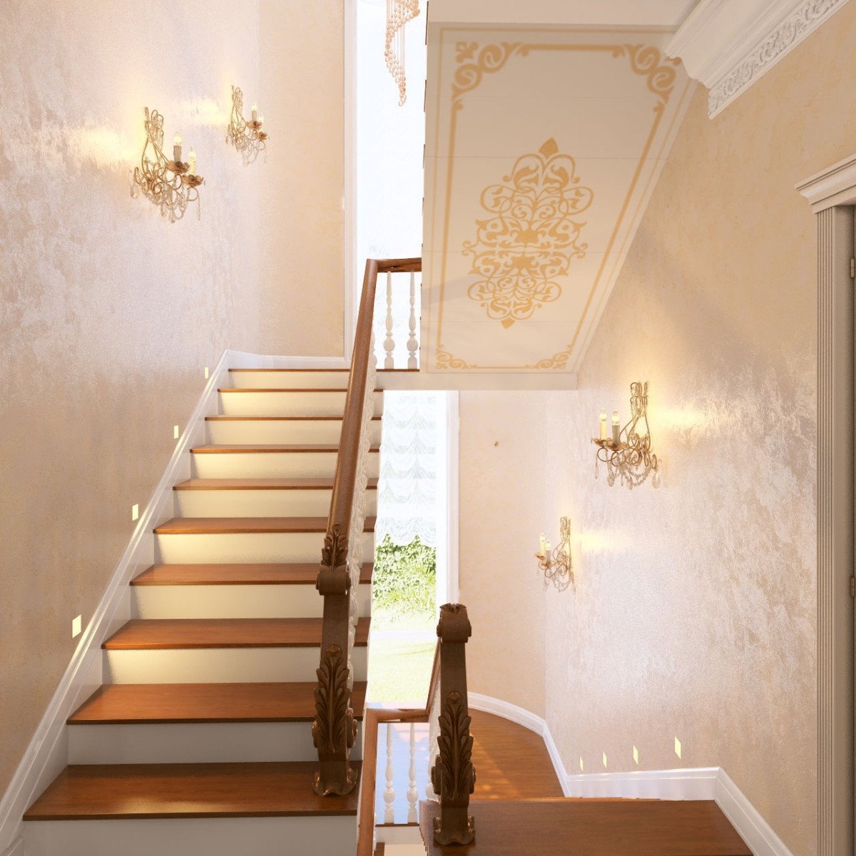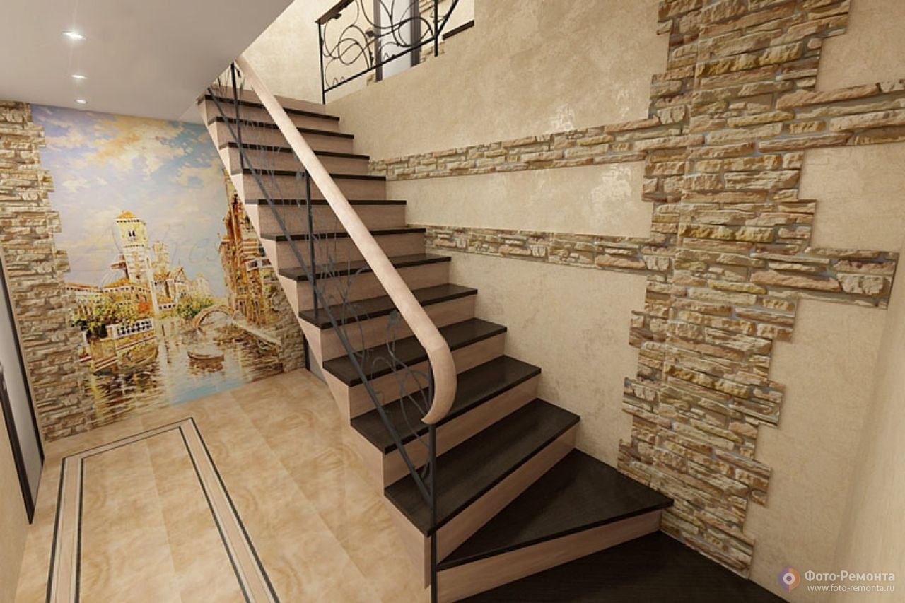 Декор стен на лестничном пролете