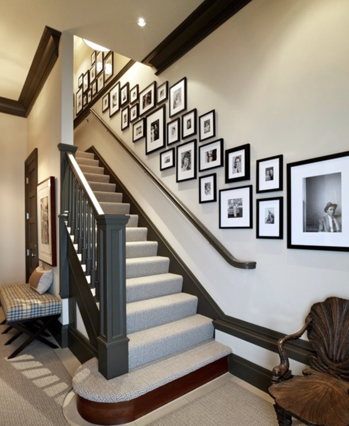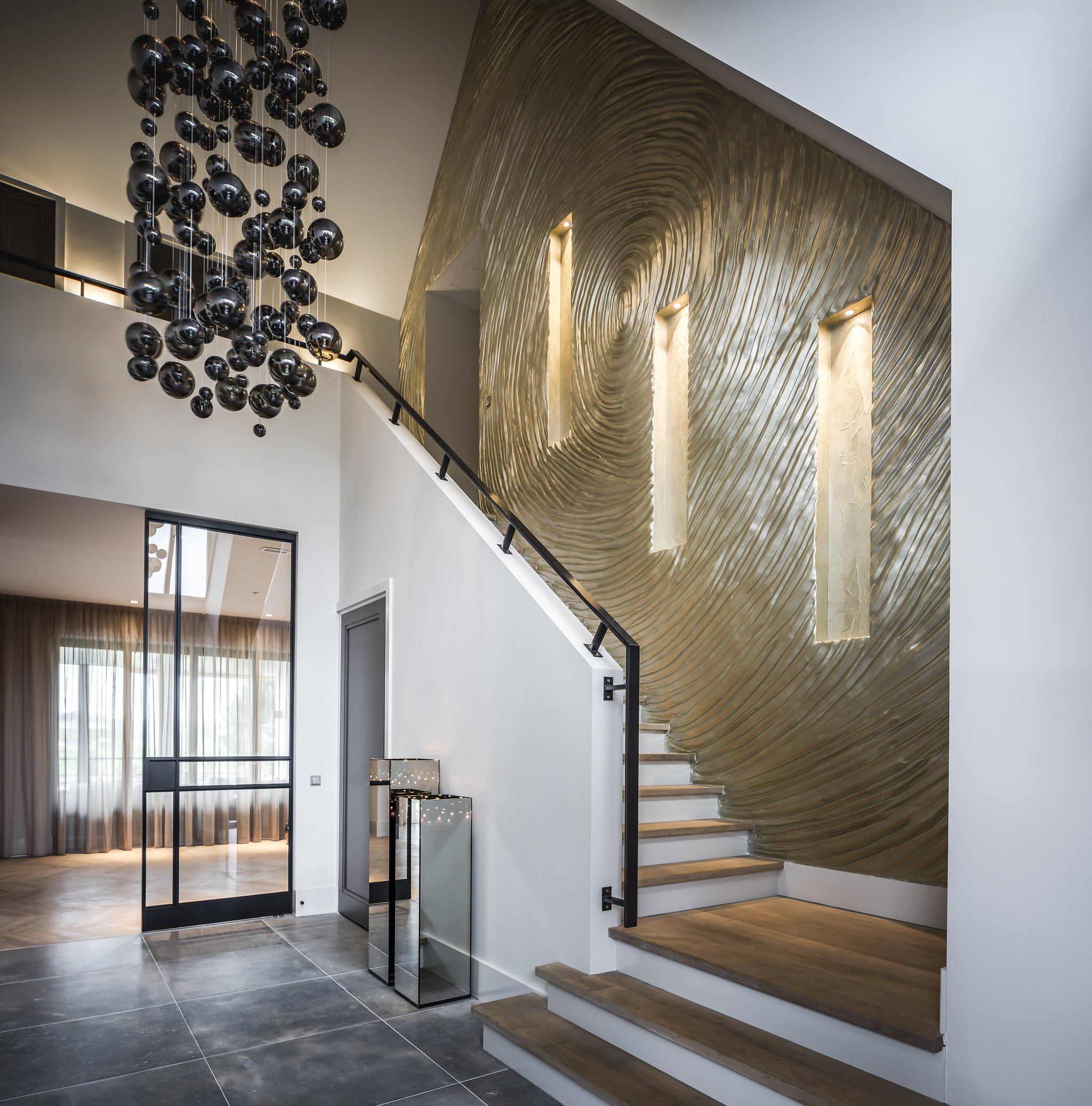 Оформление стен на лестнице в частном доме