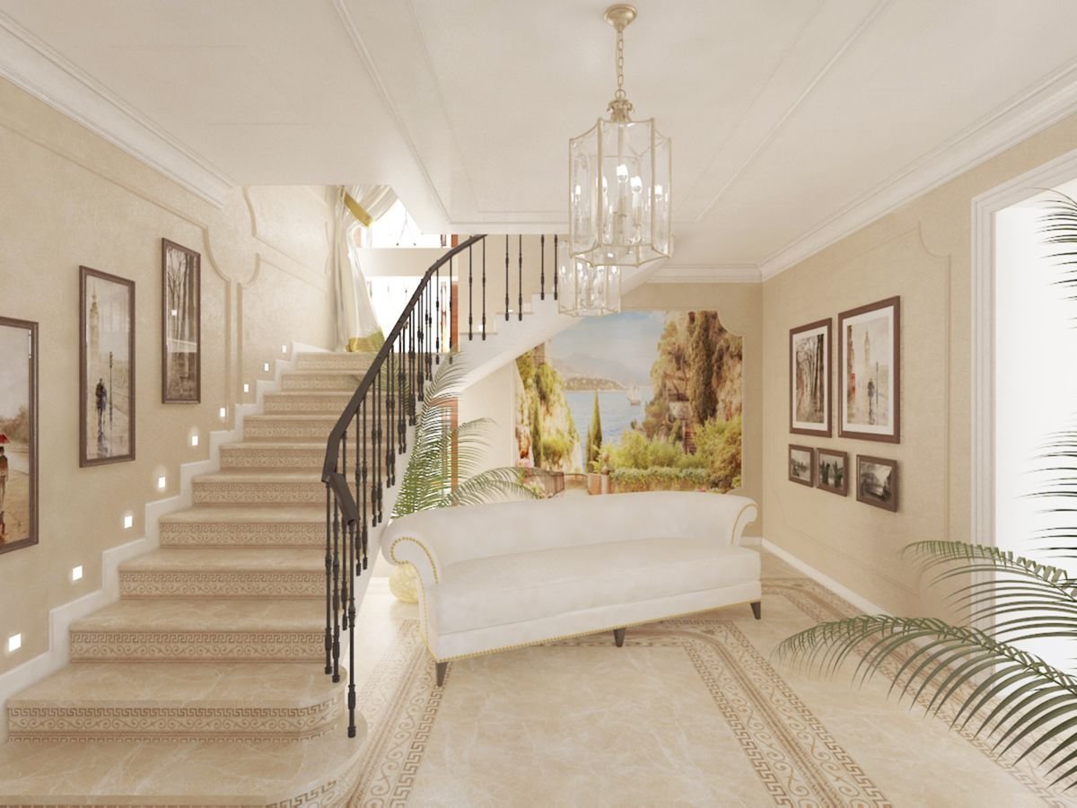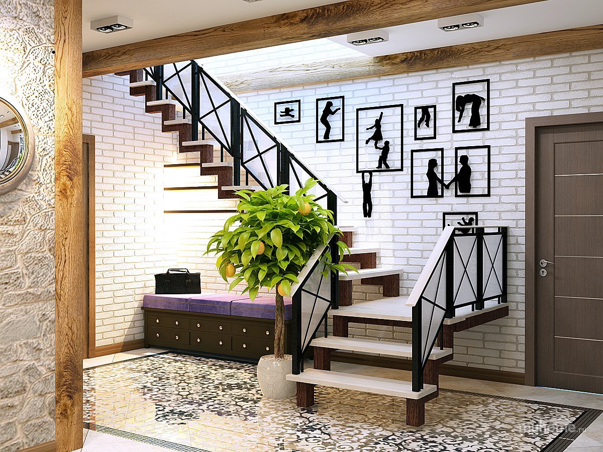 Прихожая с лестницей в частном доме