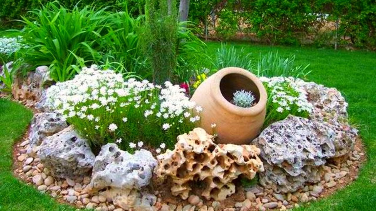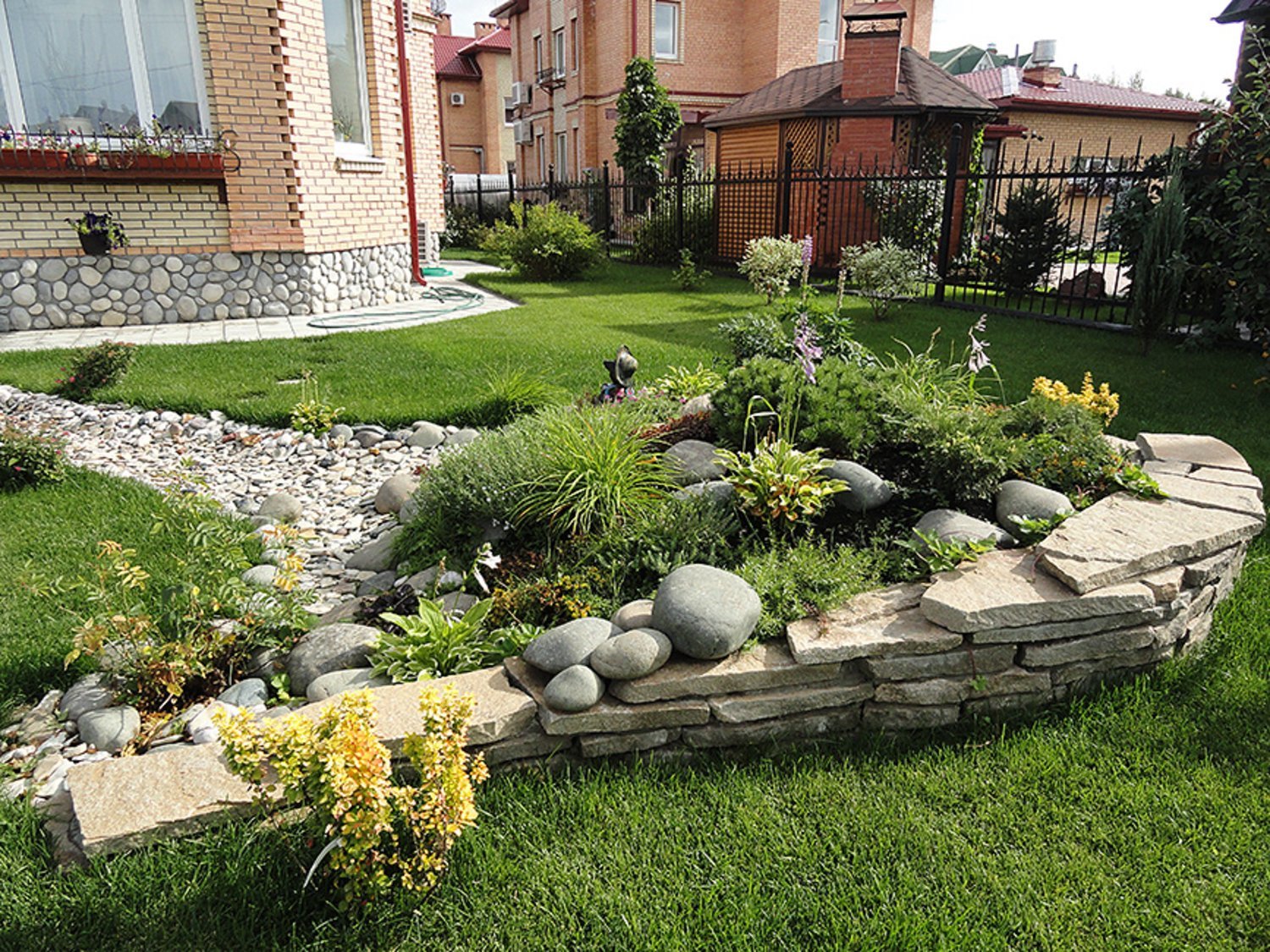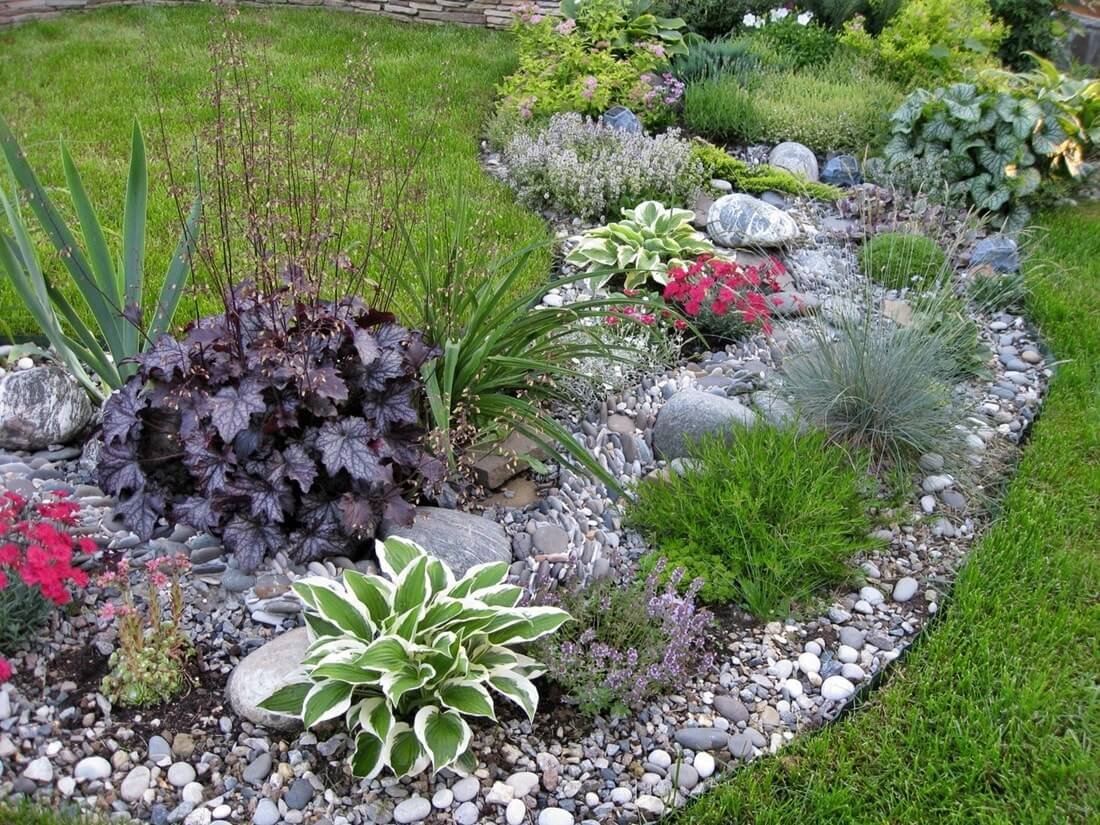 Цветочная клумба с камнями