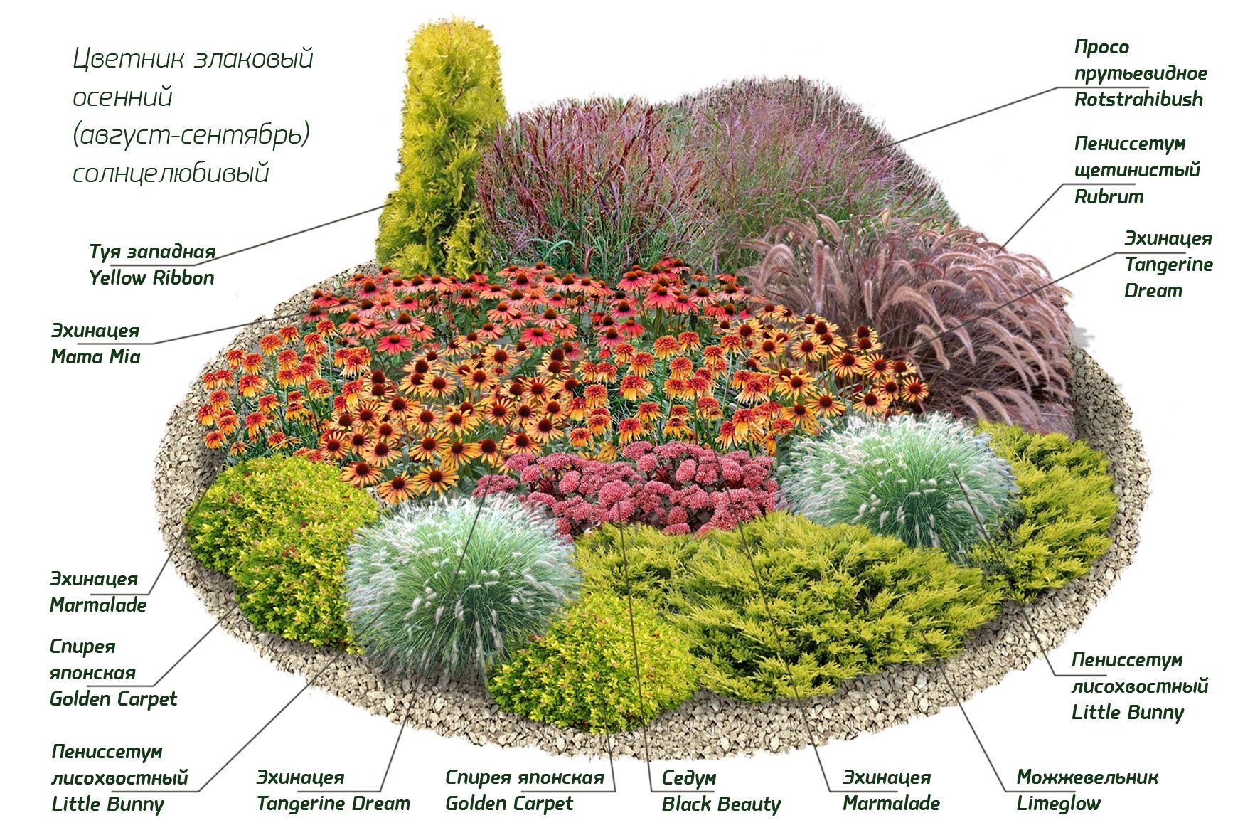 Схема миксбордера непрерывного цветения