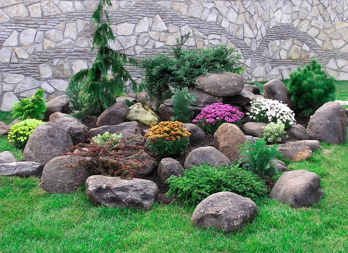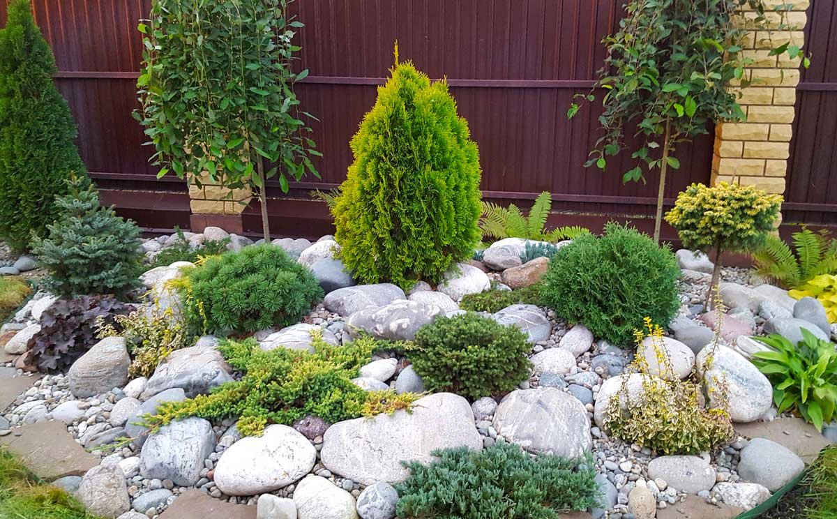 Альпинарий с хвойными растениями