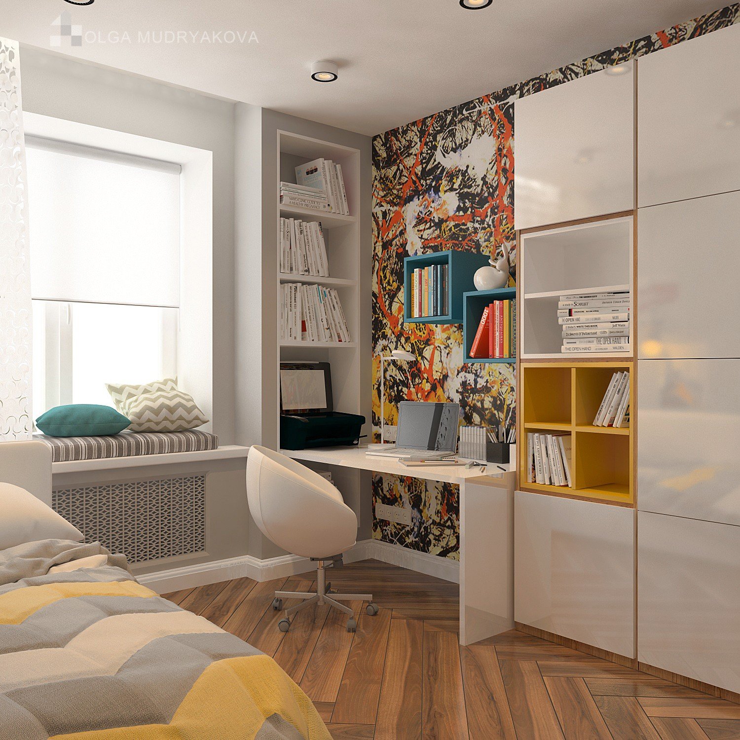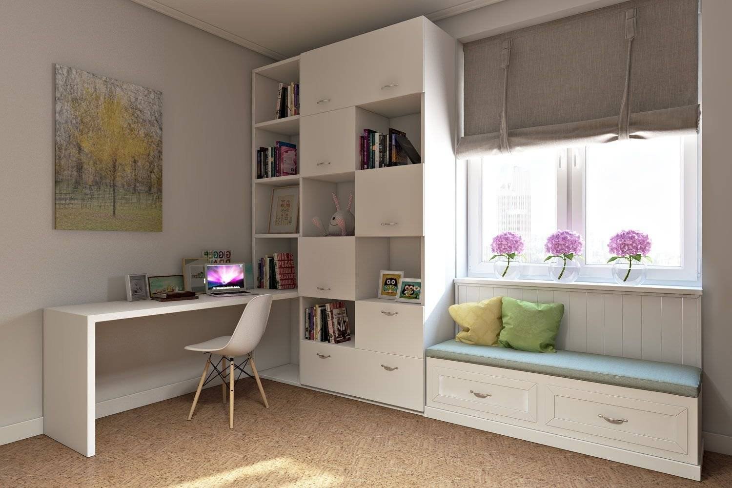 Комната подростка с белой мебелью