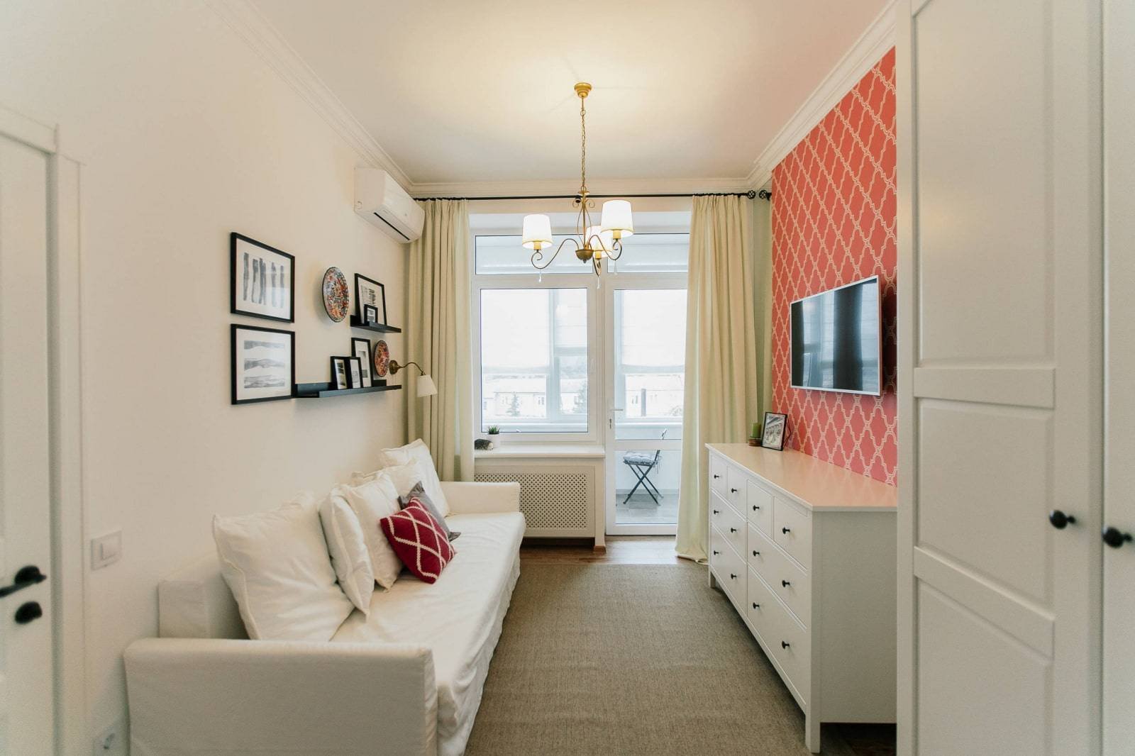 Интерьер узкой комнаты
