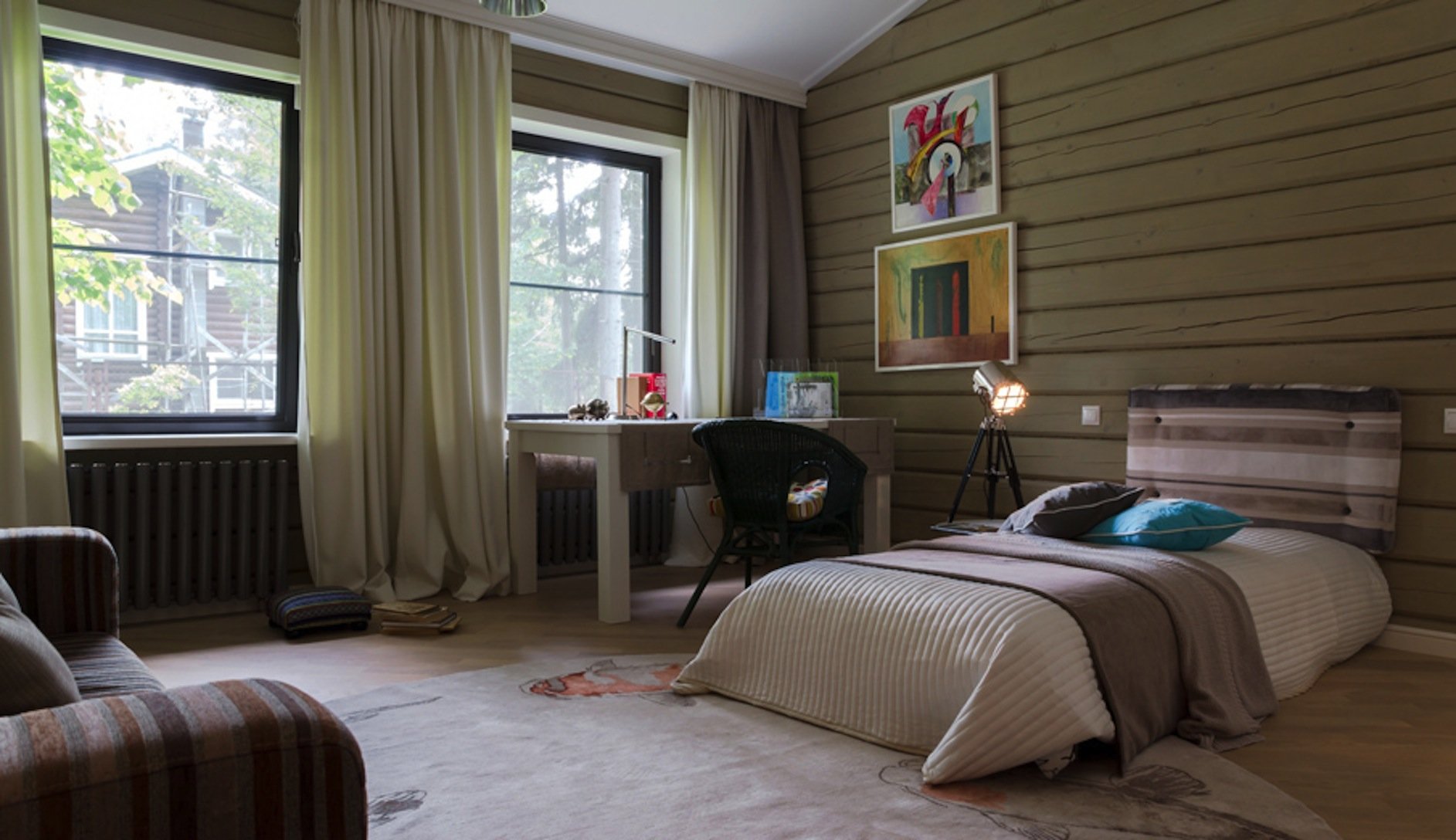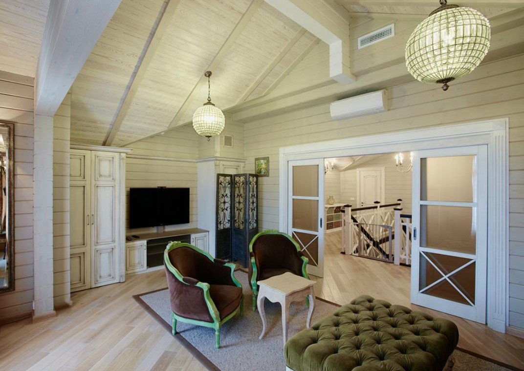 Комментируют Оливковый в интерьере деревянного дома: