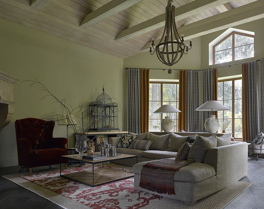 Оливковая гостиная в загородном доме