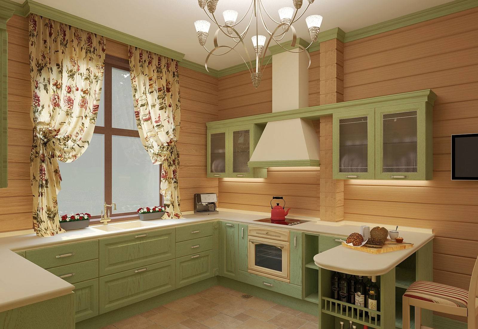 Оливковый в интерьере деревянного дома