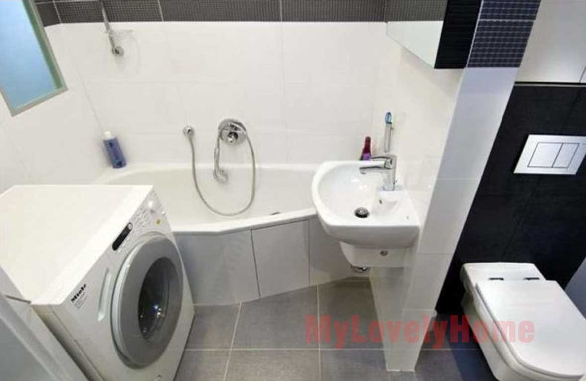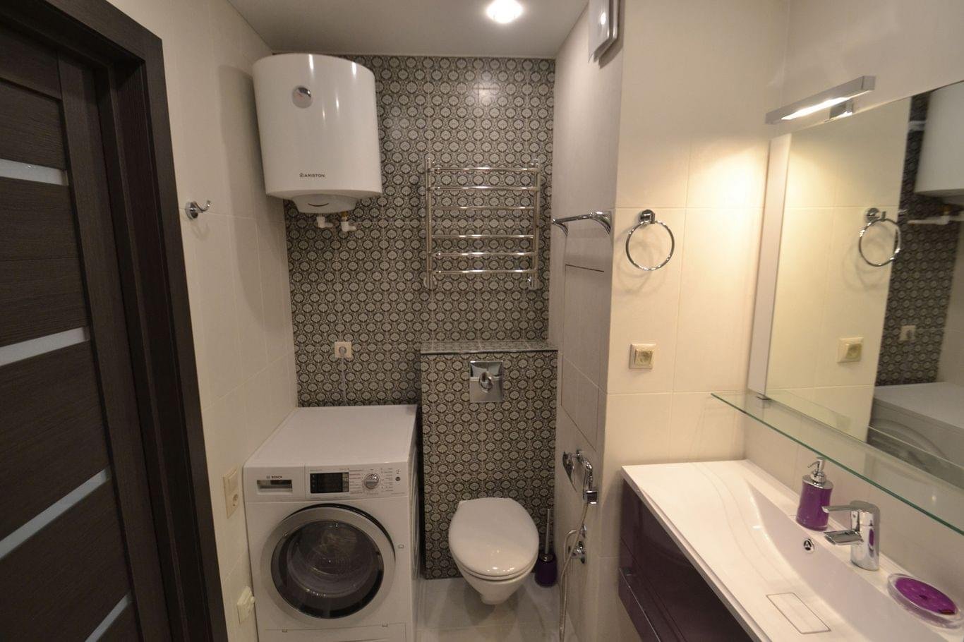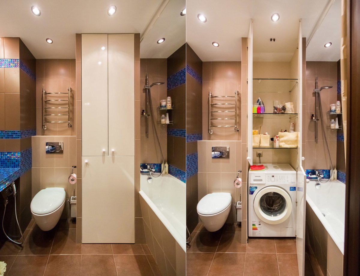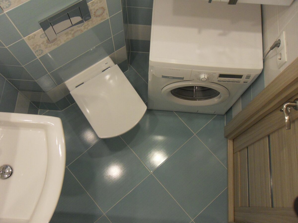 Небольшой совместный санузел со стиральной машиной