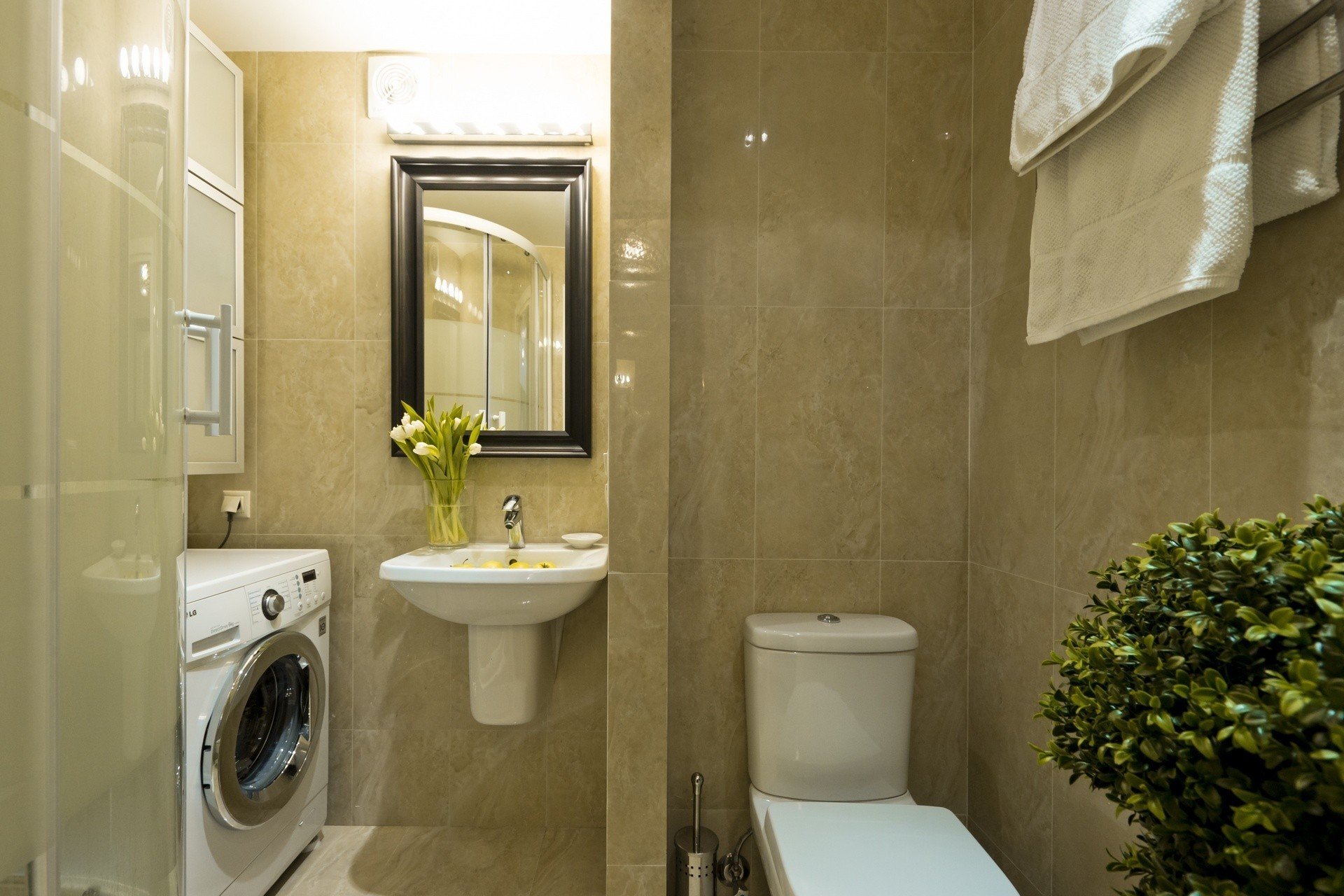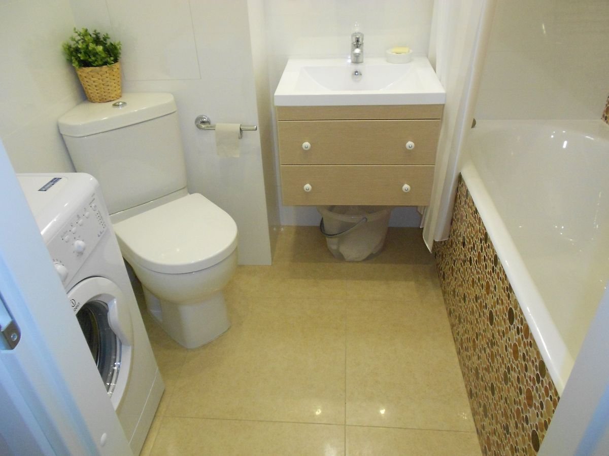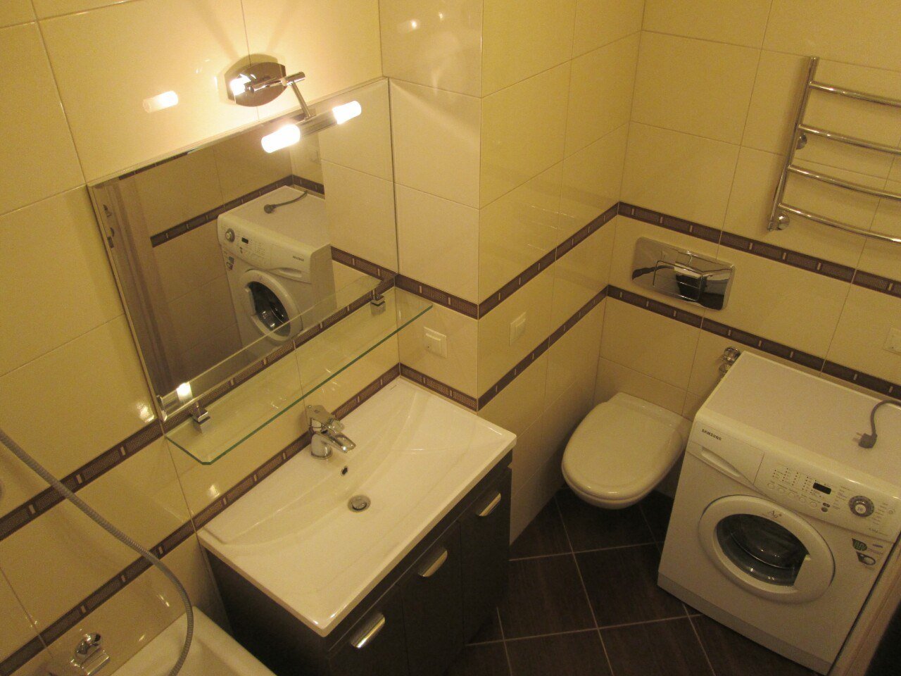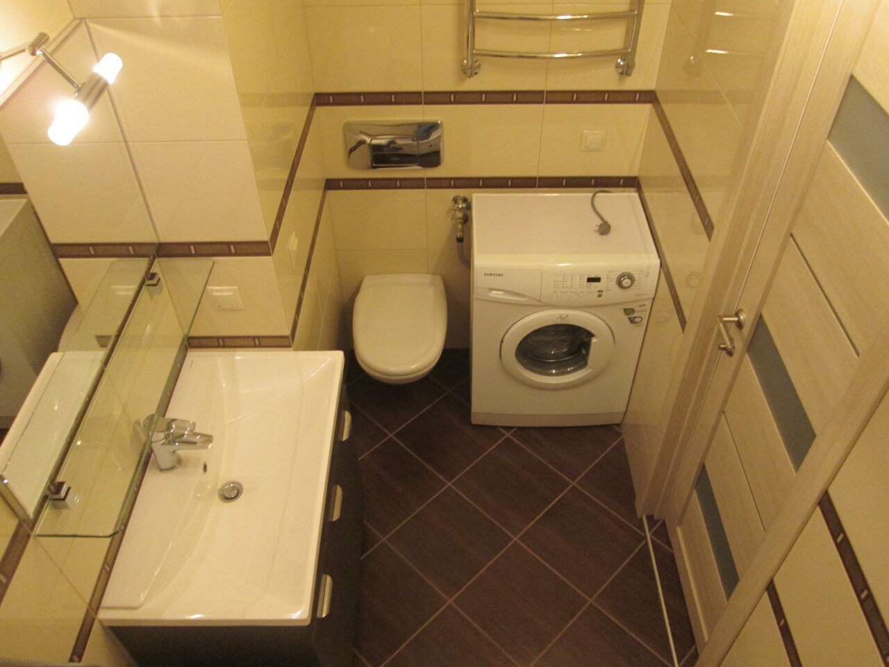 Небольшой совместный санузел со стиральной машиной