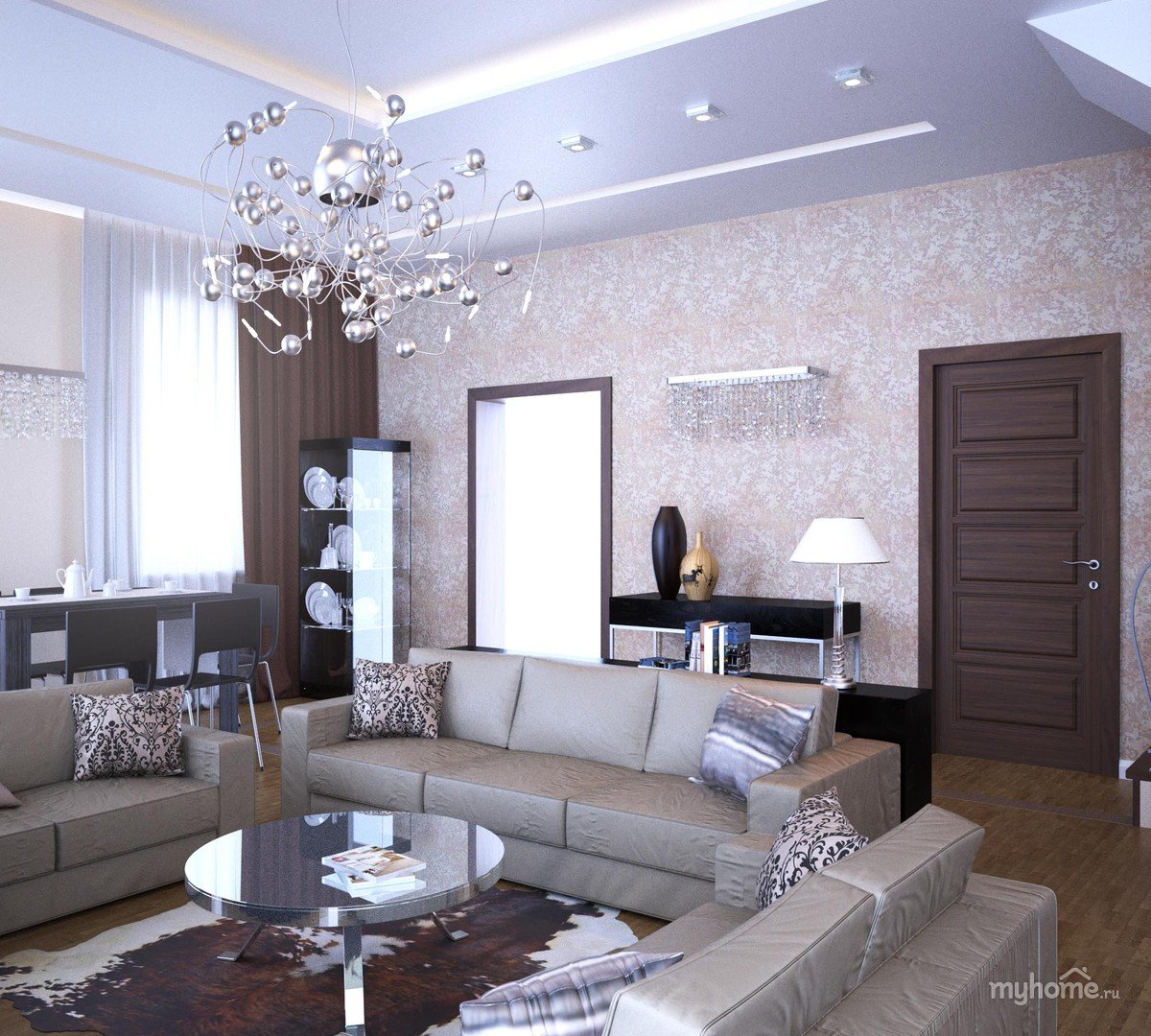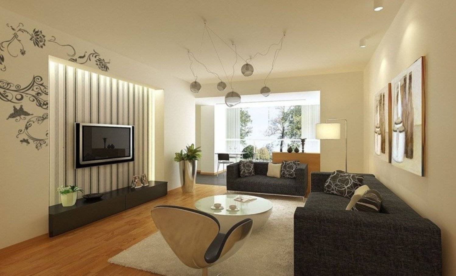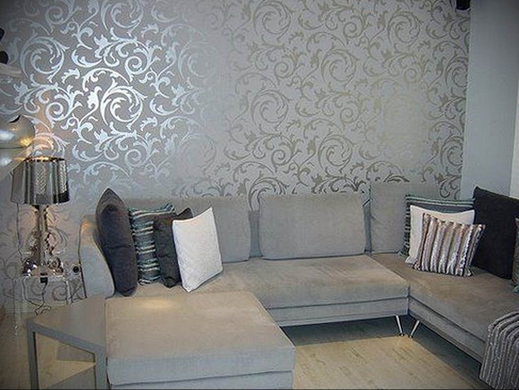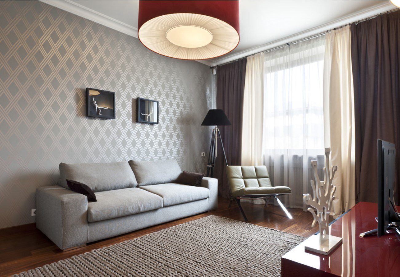 Серые обои в интерьере гостиной