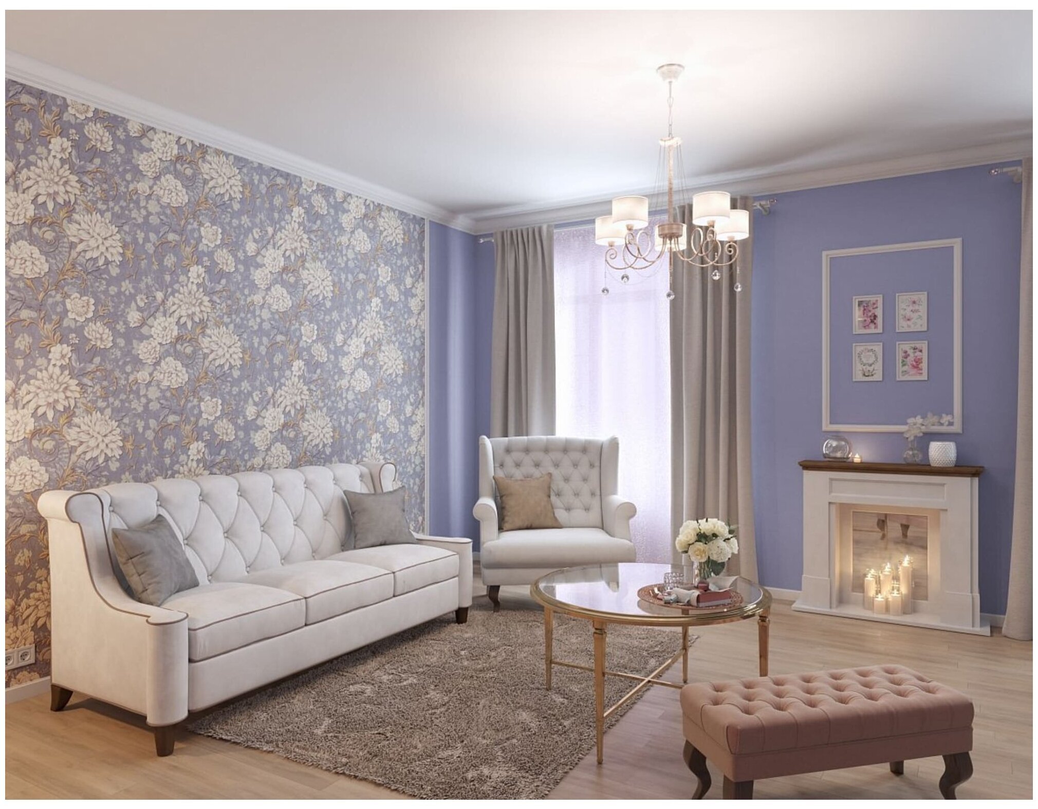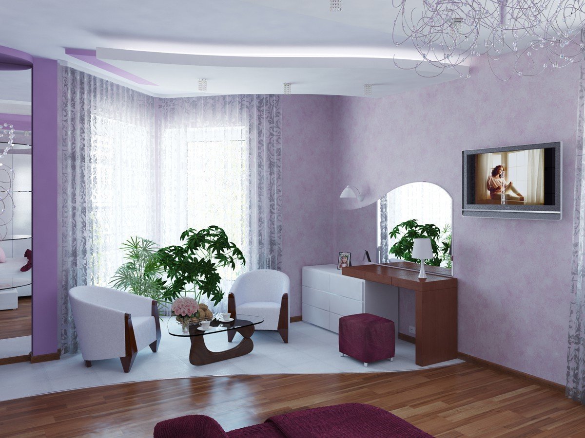 Гостиная в светло сиреневых тонах