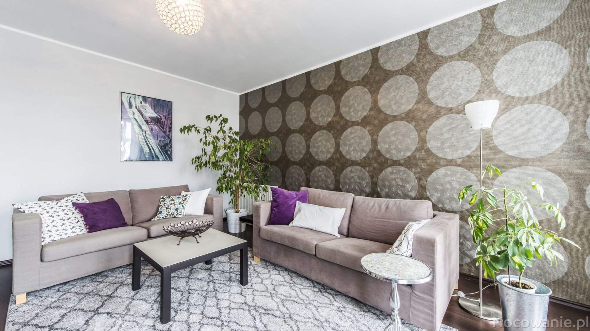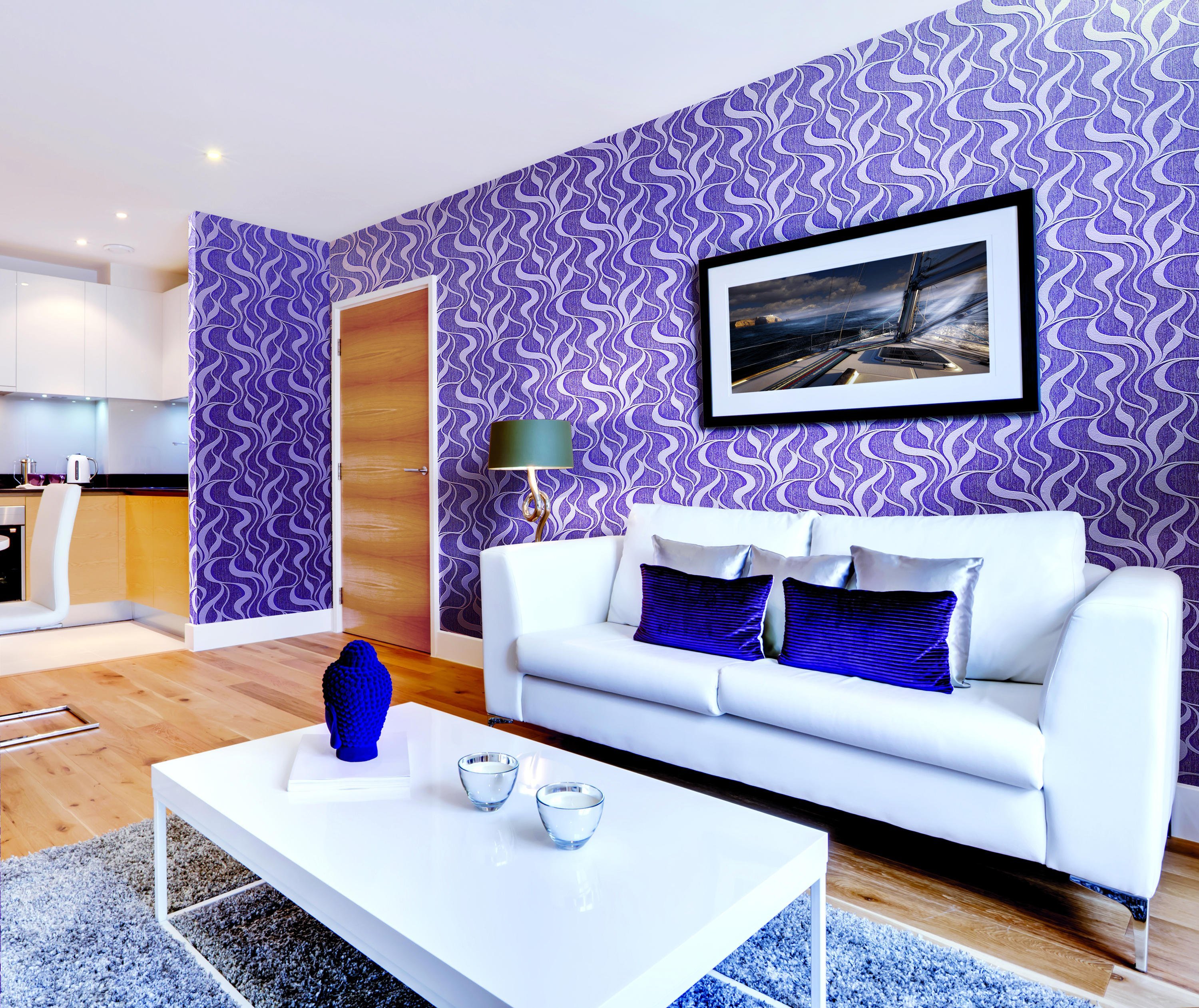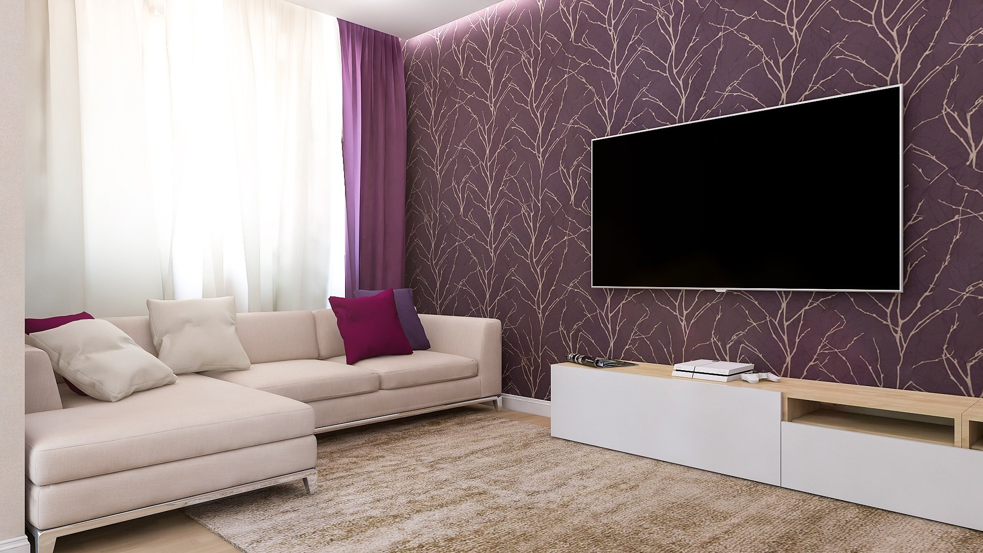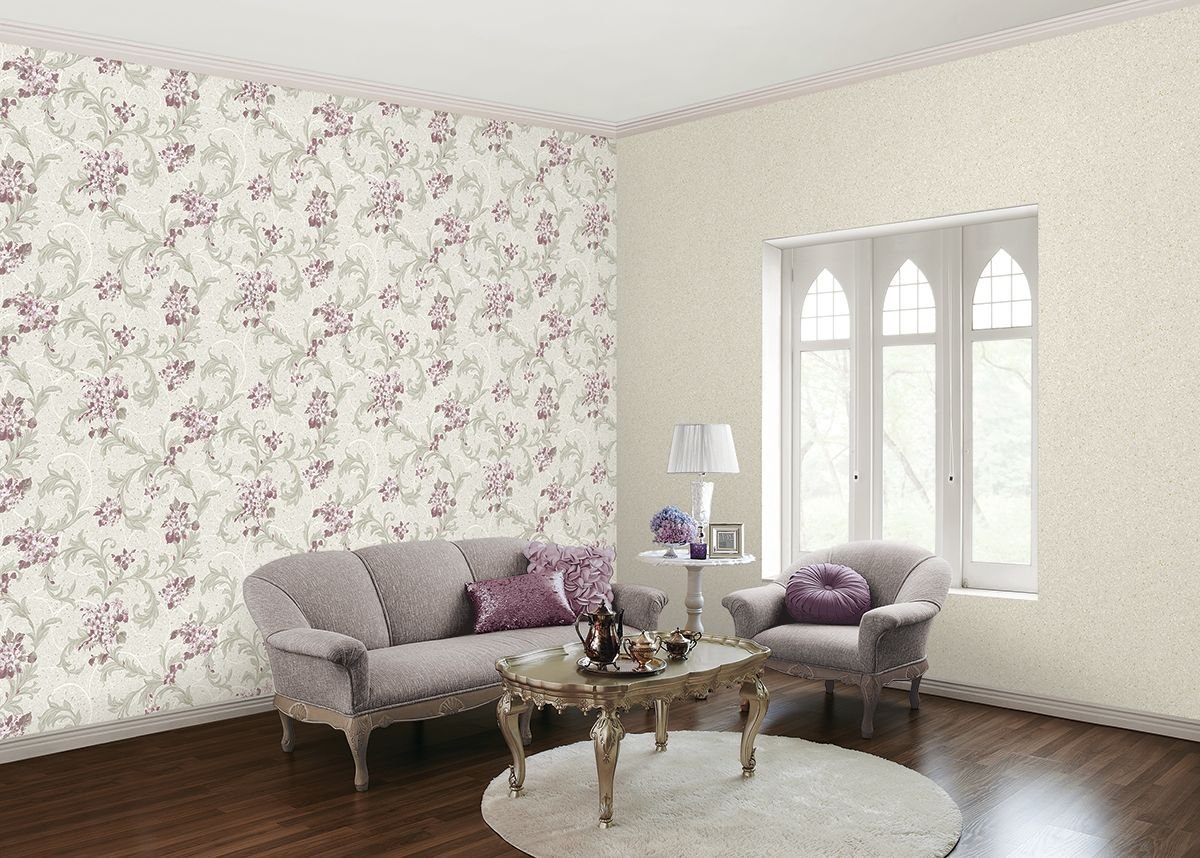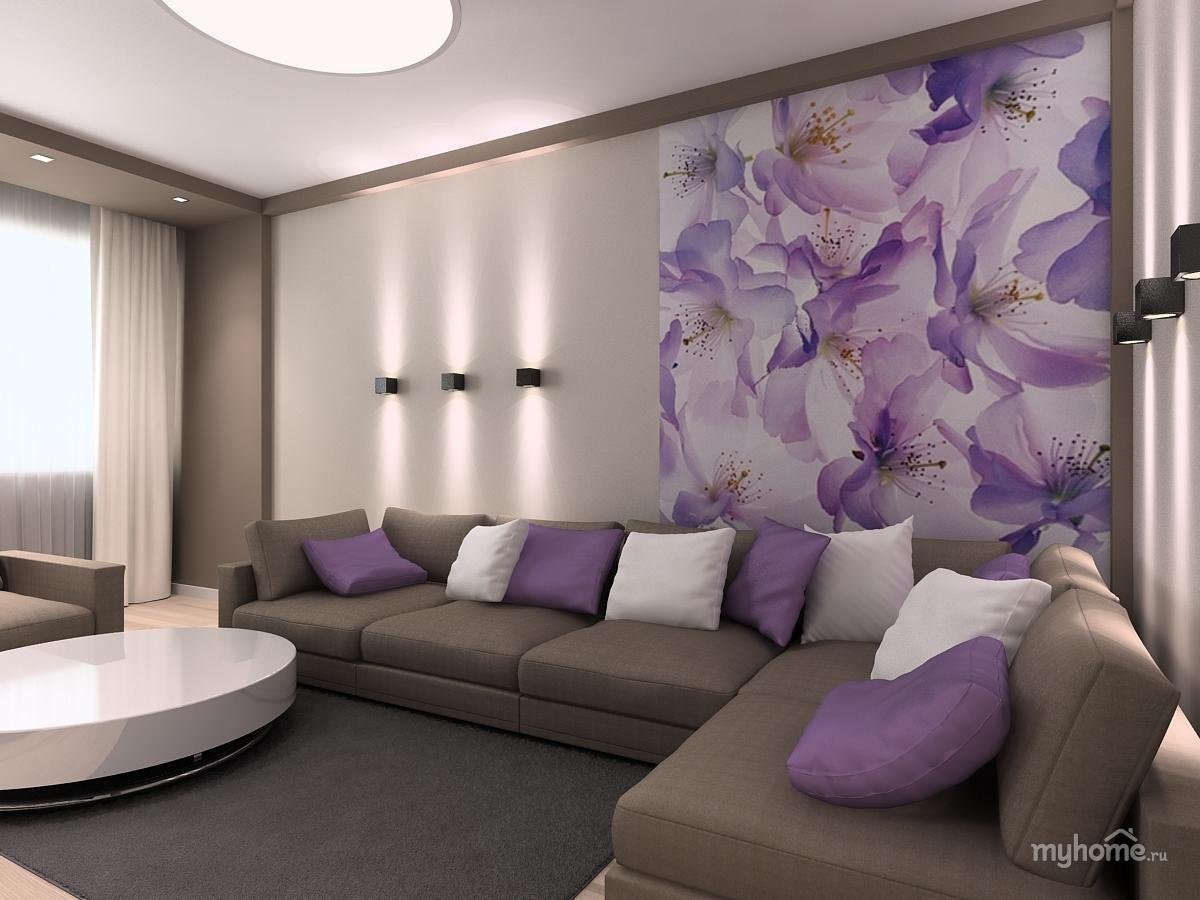 Сиреневые обои в интерьере гостиной